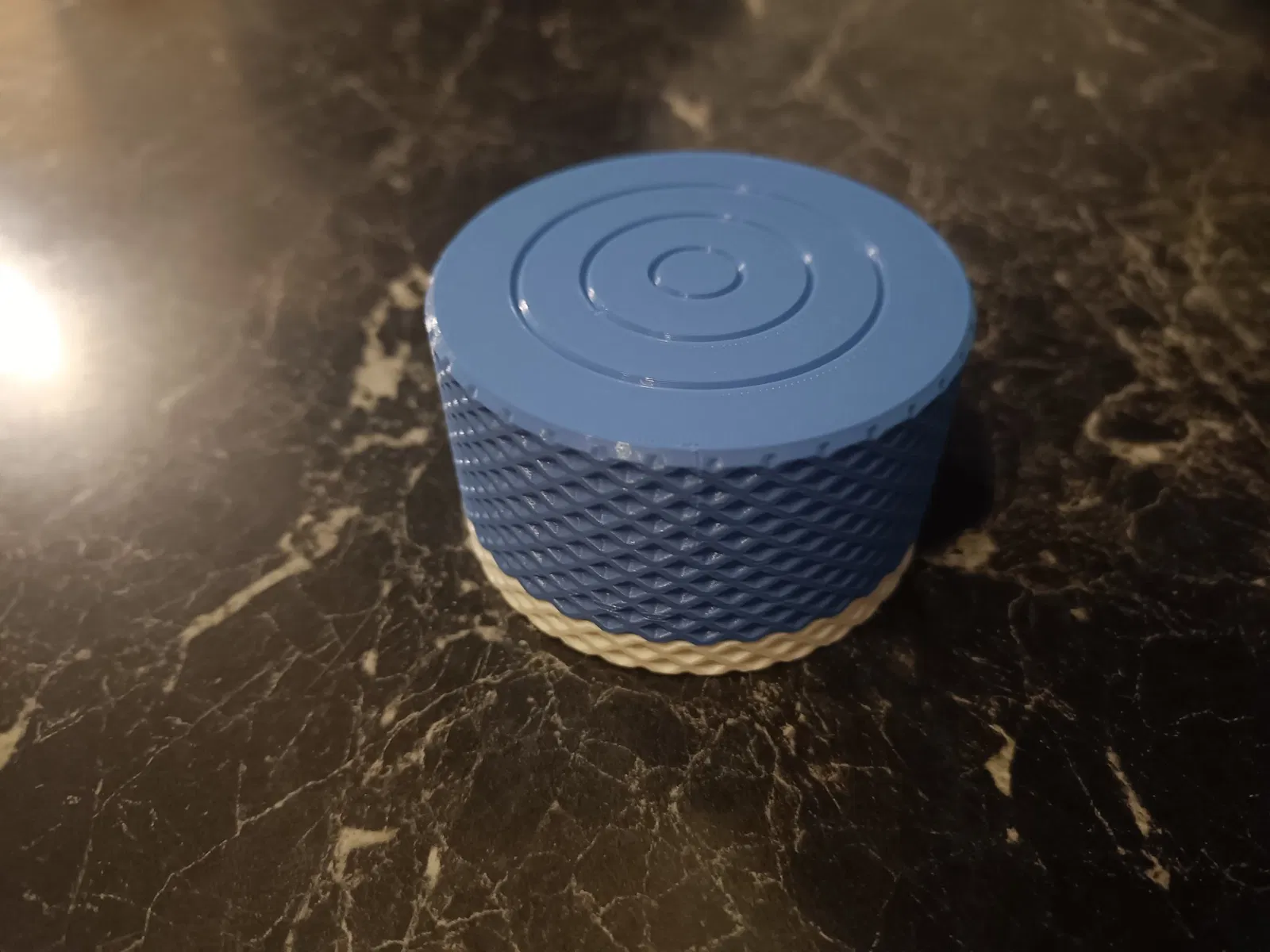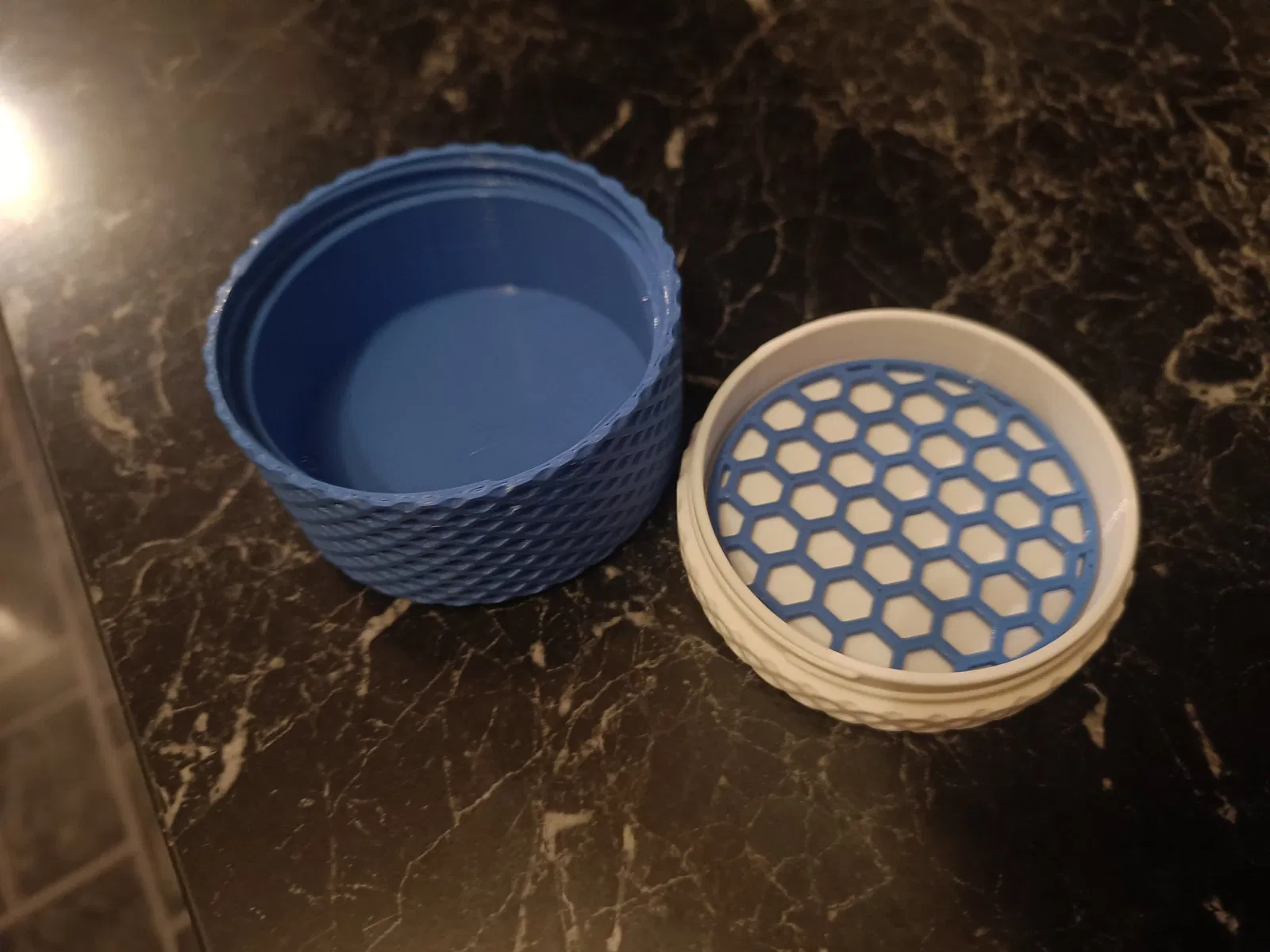 Vì bạn gái tôi muốn có 2 bánh xà phòng với cô ấy, tôi đã chỉnh sửa mô hình gốc qua eSlicer và làm cho nắp lớn hơn. Quan trọng là phải in với độ cao lớp ít nhất là 0.15, nếu không thì ren sẽ không hoạt động.