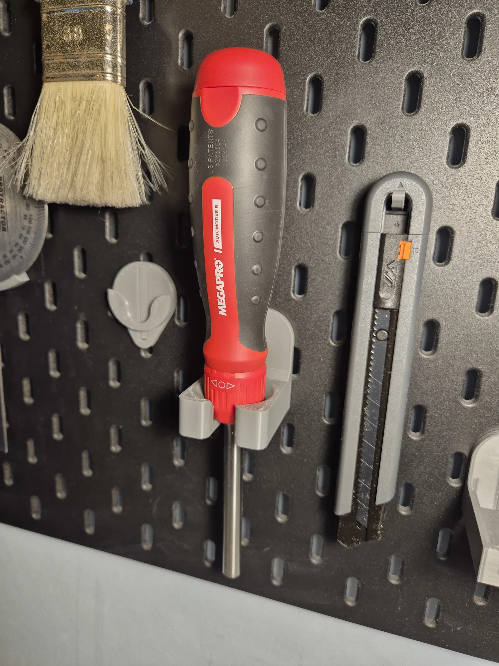 Bản remix từ giá treo tua vít LTT gốc dành cho bảng Skadis, thay thế hệ thống T-clip cũ bằng hệ thống Universal Peg tiện lợi hơn. Thiết kế tối ưu giúp giữ chắc chắn nhưng vẫn dễ dàng tháo lắp khi cần.