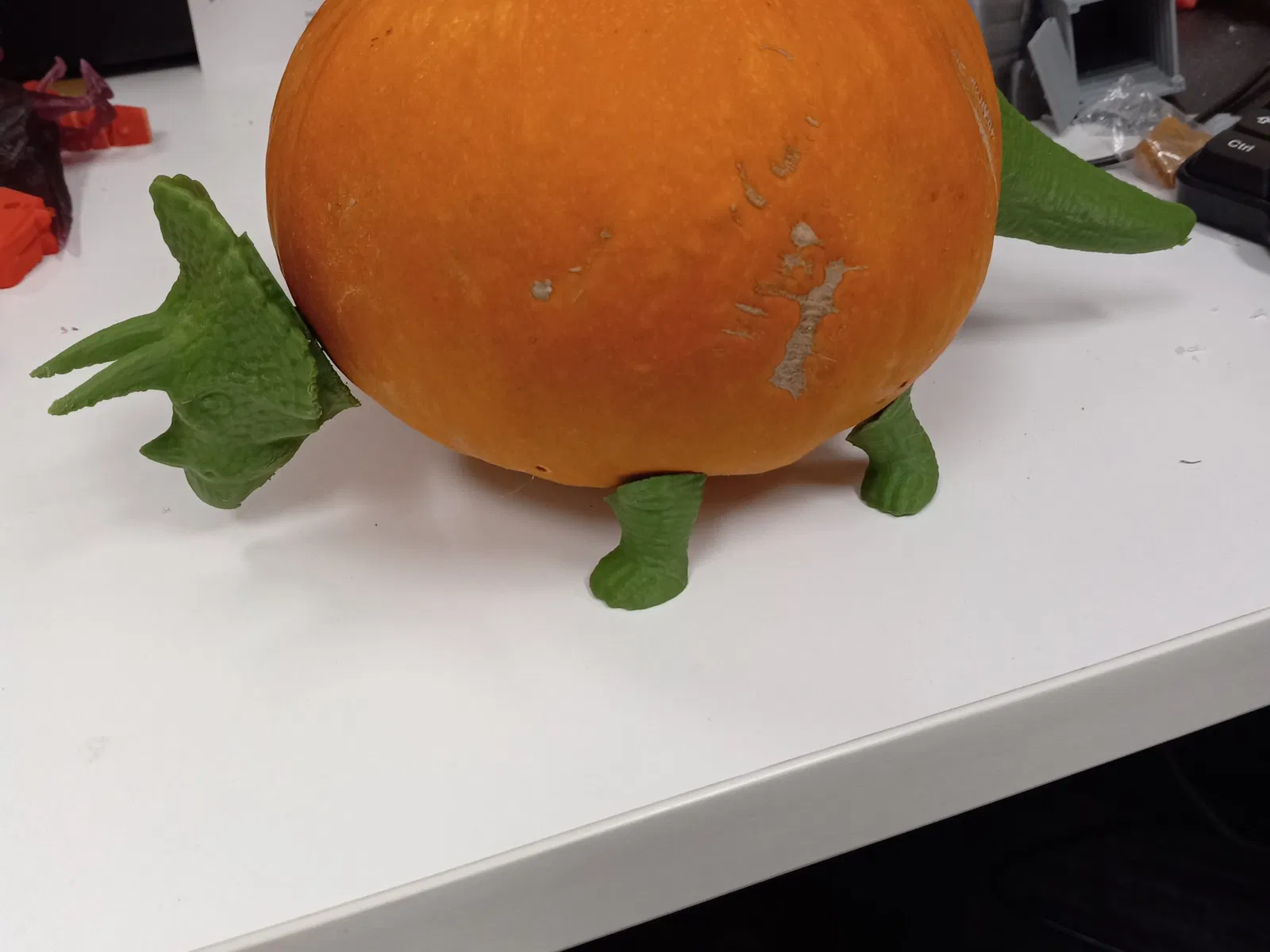 Đây là một Tricera-Pumpkin-Tops, một mô hình remix mà tôi đã thêm gai vào để ứng dụng cho rau và/hoặc trái cây. Tôi đã in với 15% độ đặc và PLA có hỗ trợ.