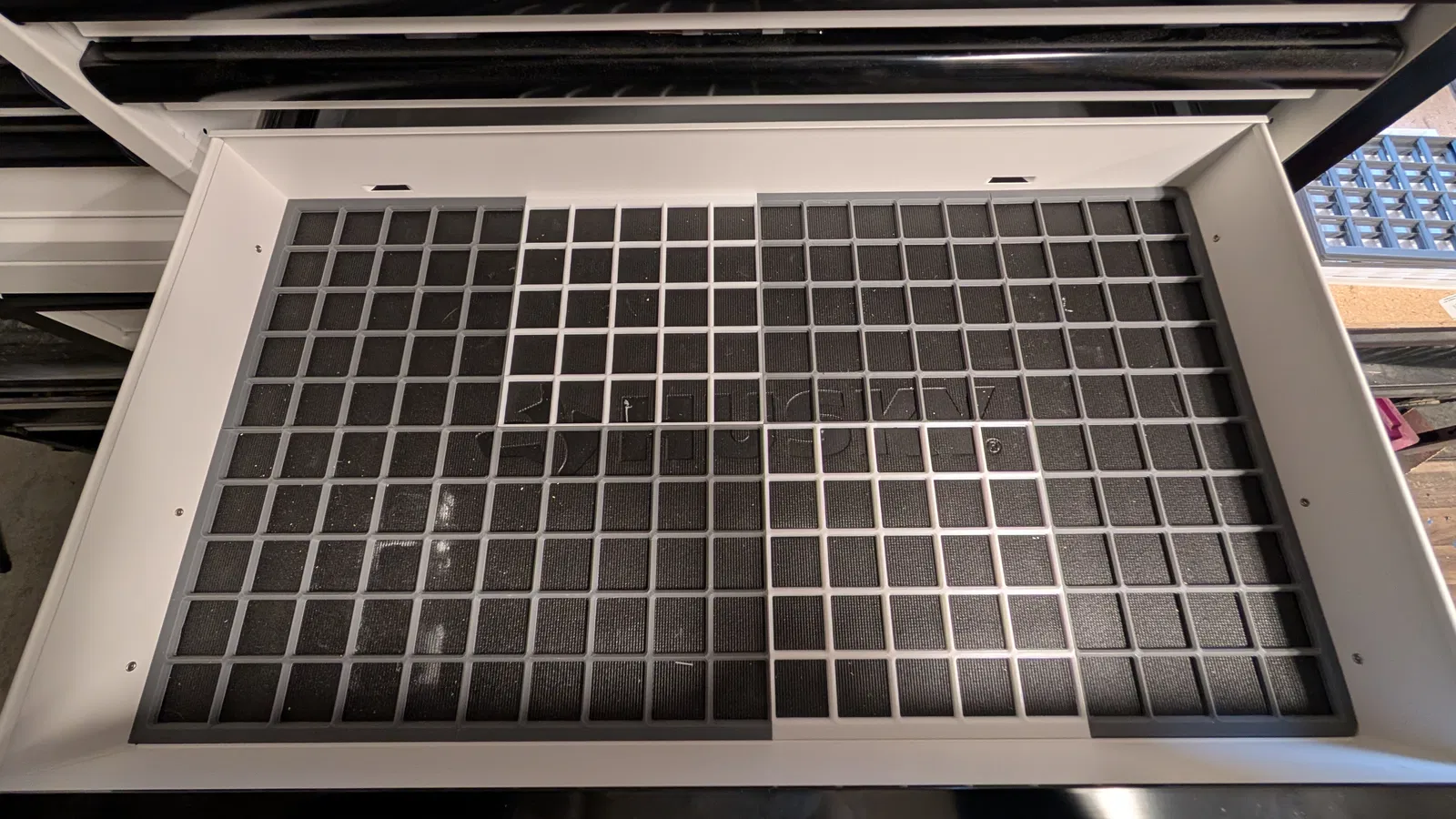 Tận dụng toàn bộ diện tích ngăn kéo 32 inch trên tủ đồ nghề Husky 52 inch với hệ thống Gridfinity. Thiết kế này giúp sắp xếp dụng cụ gọn gàng, được in ấn thành công trên máy Ender 3 V3 SE và Cobra S1.