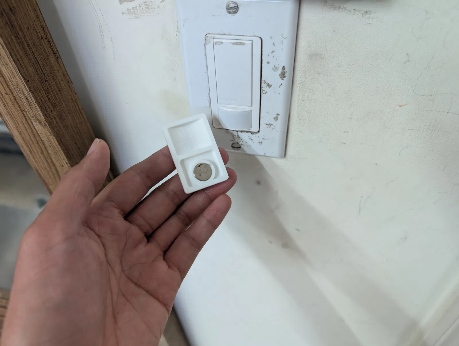Cái nắp đậy này giúp bạn vô hiệu hóa tính năng cảm biến chuyển động của công tắc Lutron Maestro bằng cách che chắn vật lý cảm biến, cho phép bạn di chuyển thoải mái mà không lo đèn tự động bật tắt. Phụ kiện này được gắn vào vít của mặt nạ công tắc hiện có bằng một nam châm 12mm. Khi không cần dùng, bạn có thể xoay ngược nó lại để lộ phần cảm biến ra, hoặc đơn giản là dán nó lên bất kỳ bề mặt kim loại nào gần đó.