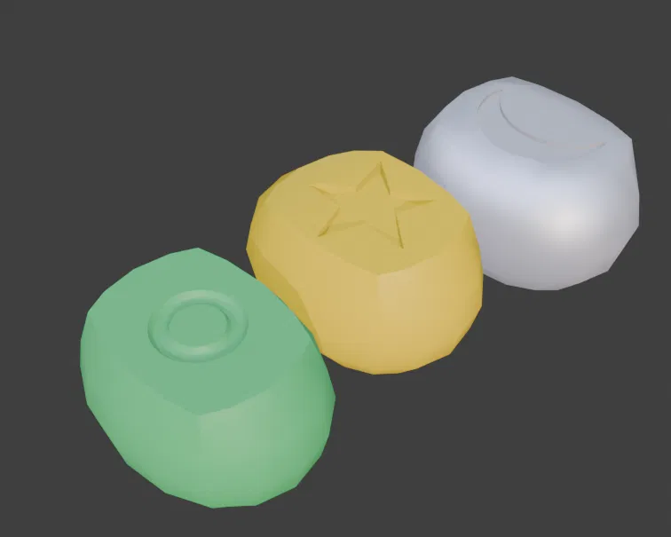 - Bộ sản phẩm bao gồm: Hình Ngôi sao (Vàng), Hình Mặt trăng (Tím), Hình tròn O (Xanh lá).