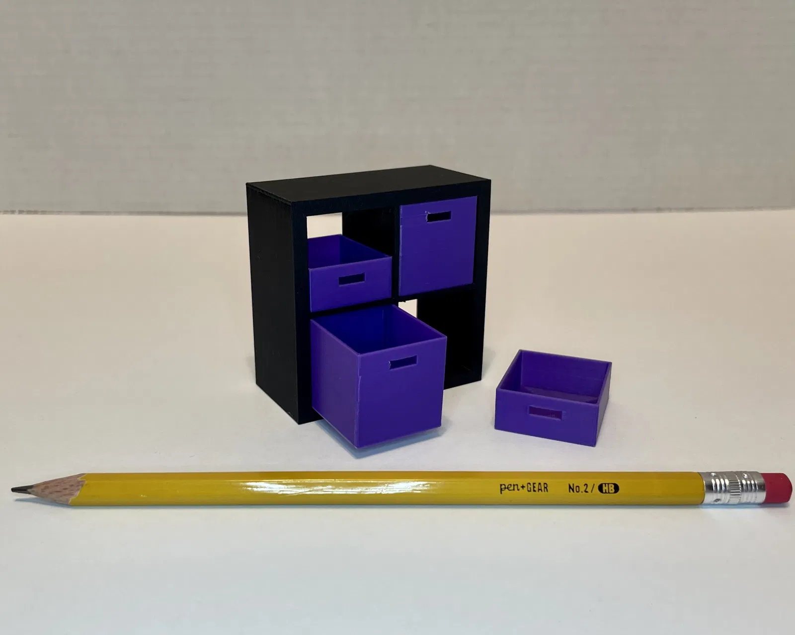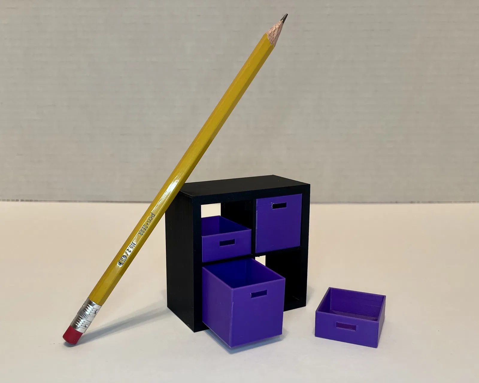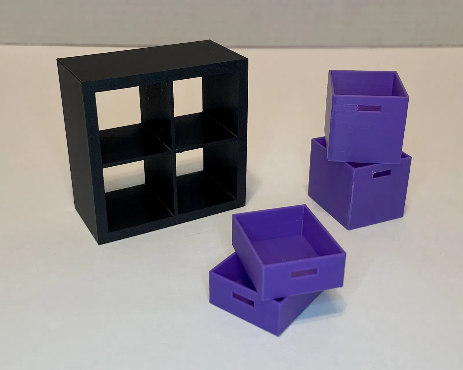 Đây là một mô hình tỉ lệ 1:12 chính xác của một tổ chức lưu trữ bốn khối. Hoàn thiện nó với các thùng lưu trữ khối ở cả kích thước đầy đủ và nửa.