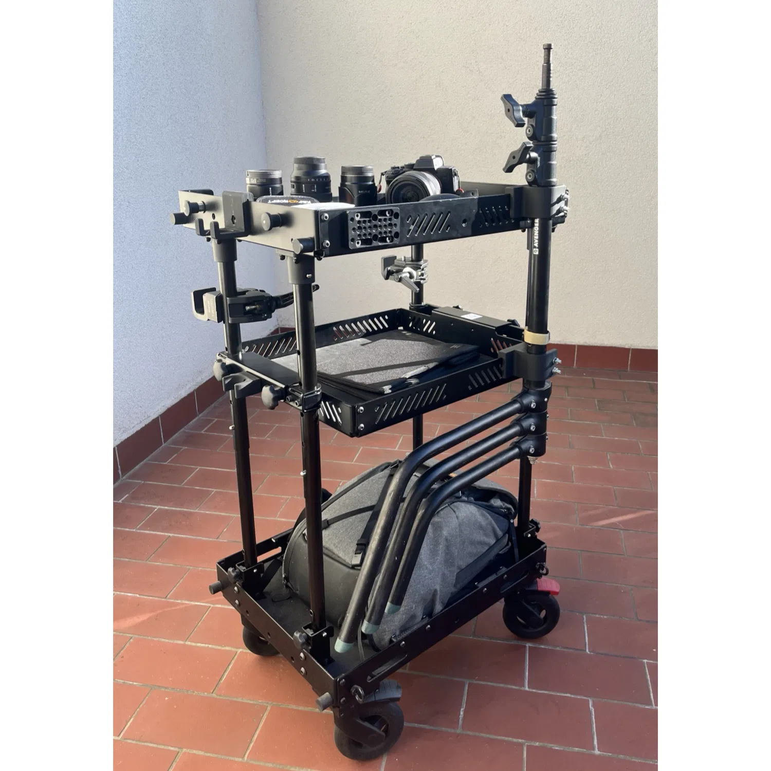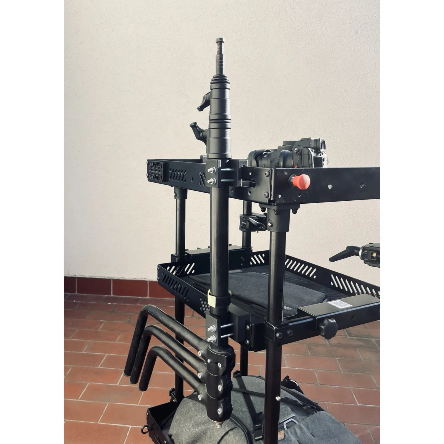⚠ Vui lòng kiểm tra độ ổn định của xe khi vận hành (khi đẩy/kéo/quay xe) trước khi chất các thiết bị đắt tiền lên. Nếu cần, hãy thêm tạ đối trọng vào kệ dưới cùng.