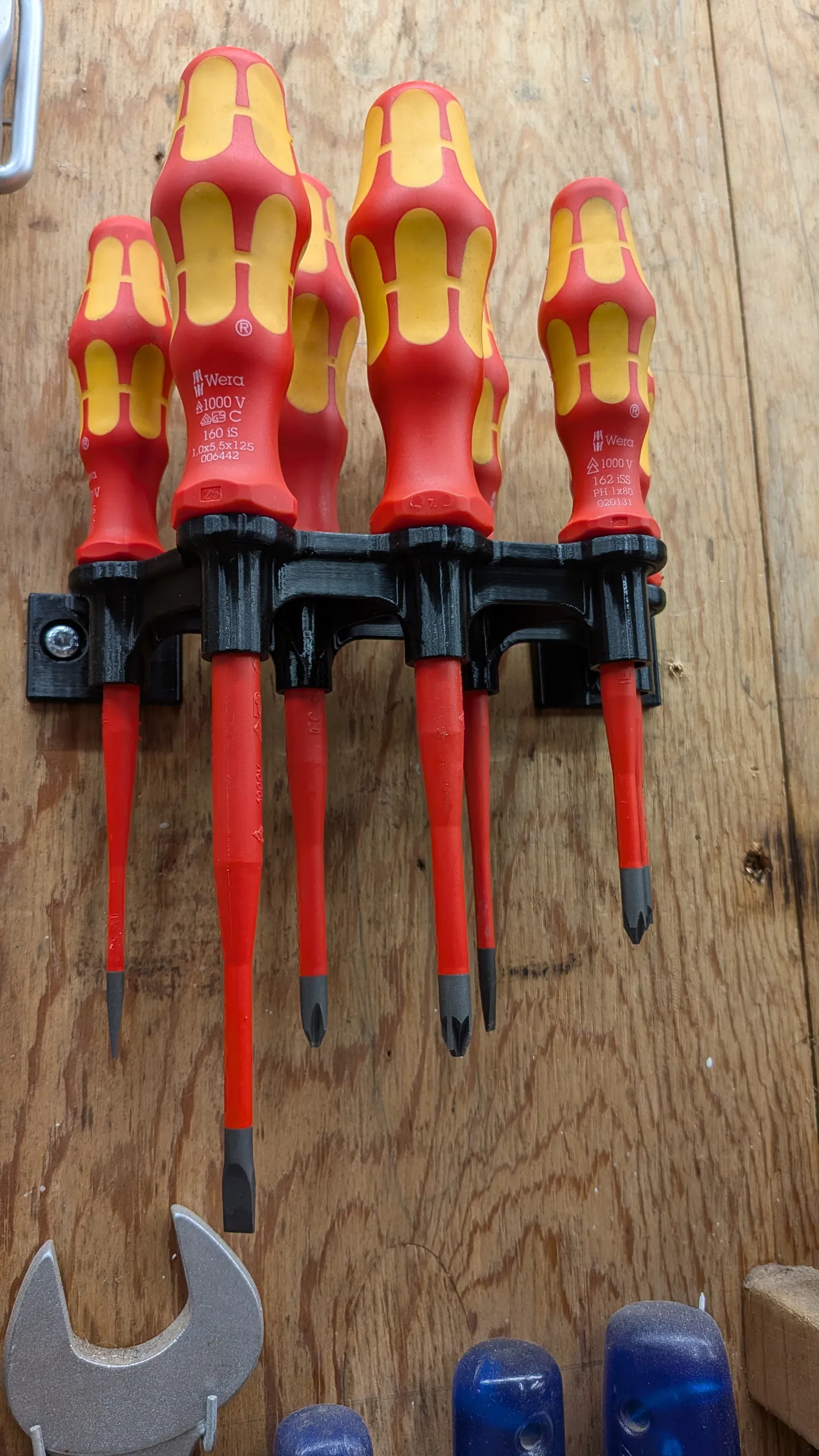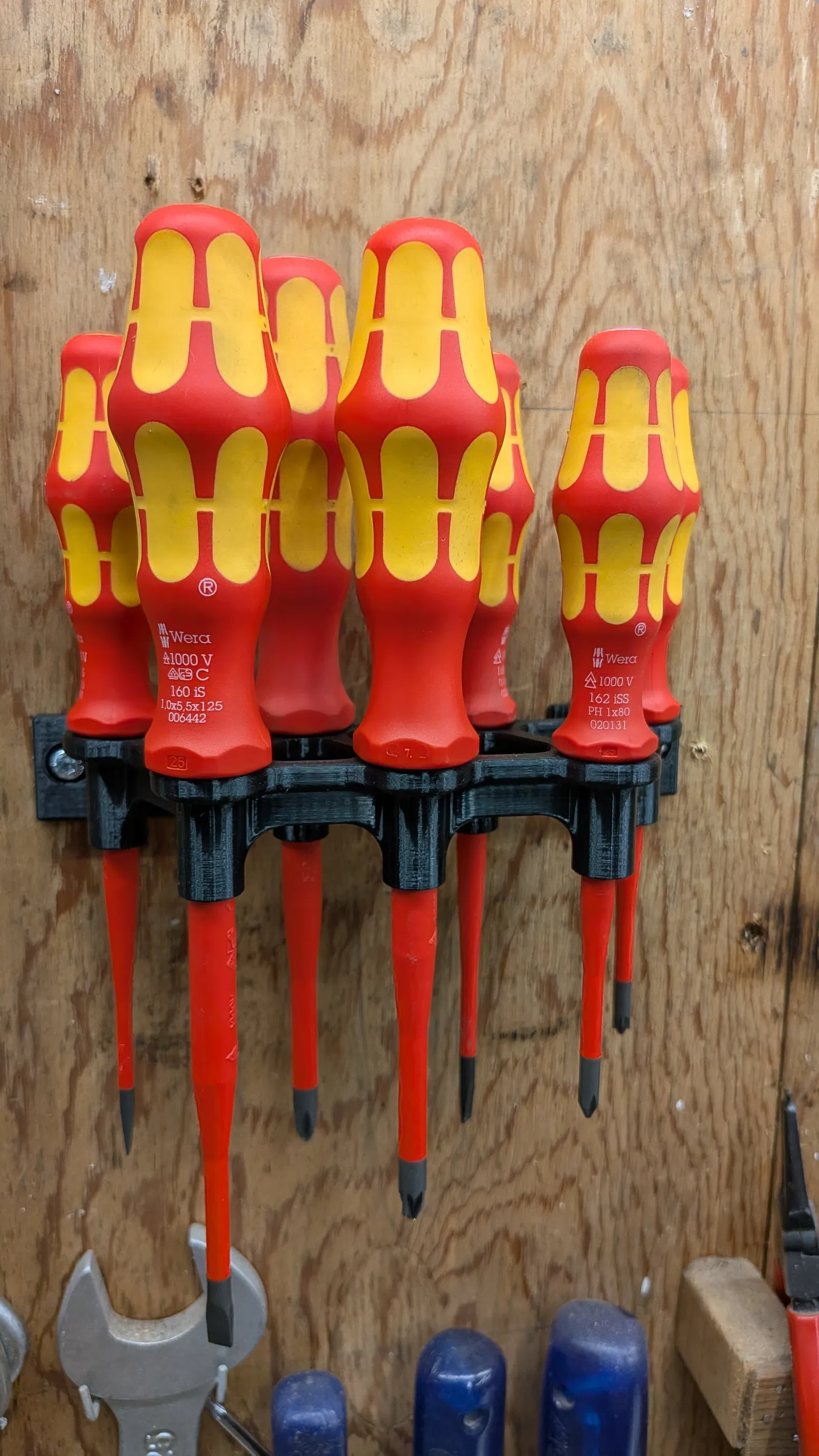 Giá treo tường tiện lợi và chắc chắn dành cho bộ 7 tuốc nơ vít. Thiết kế được đo đạc kỹ lưỡng, phù hợp hoàn hảo với các loại tuốc nơ vít như Wera Kraftform Plus, giúp không gian làm việc của bạn gọn gàng và ngăn nắp hơn.