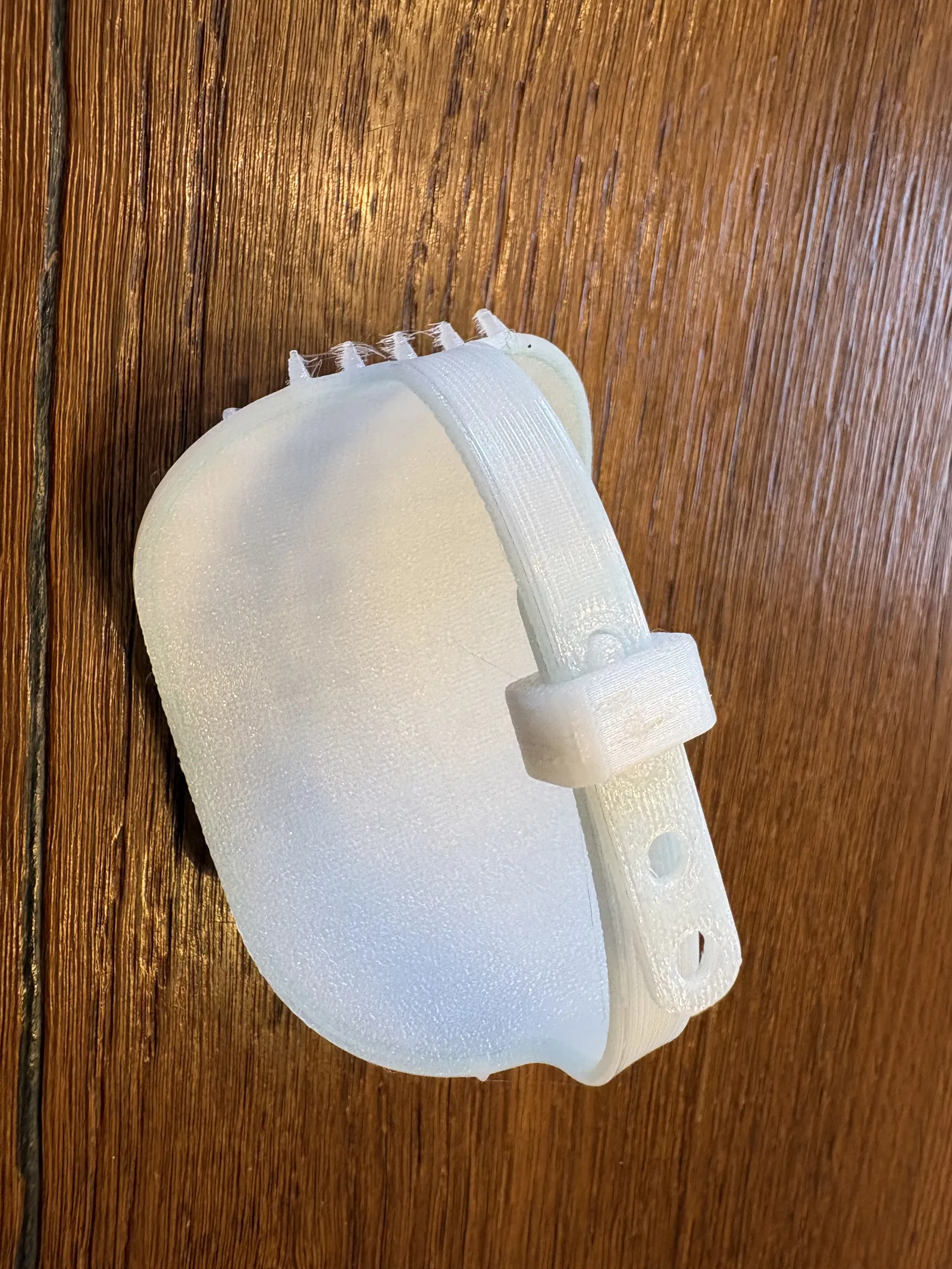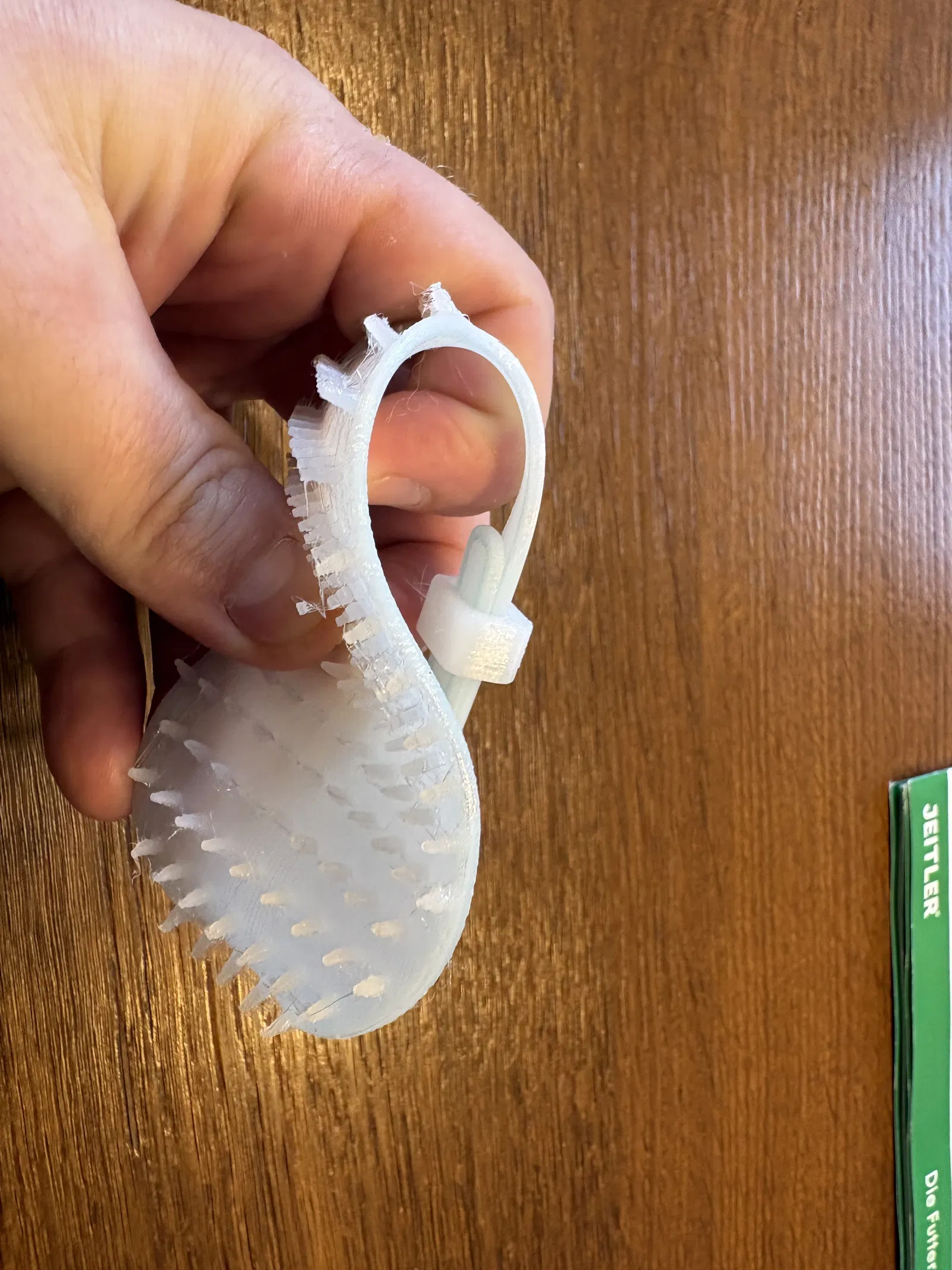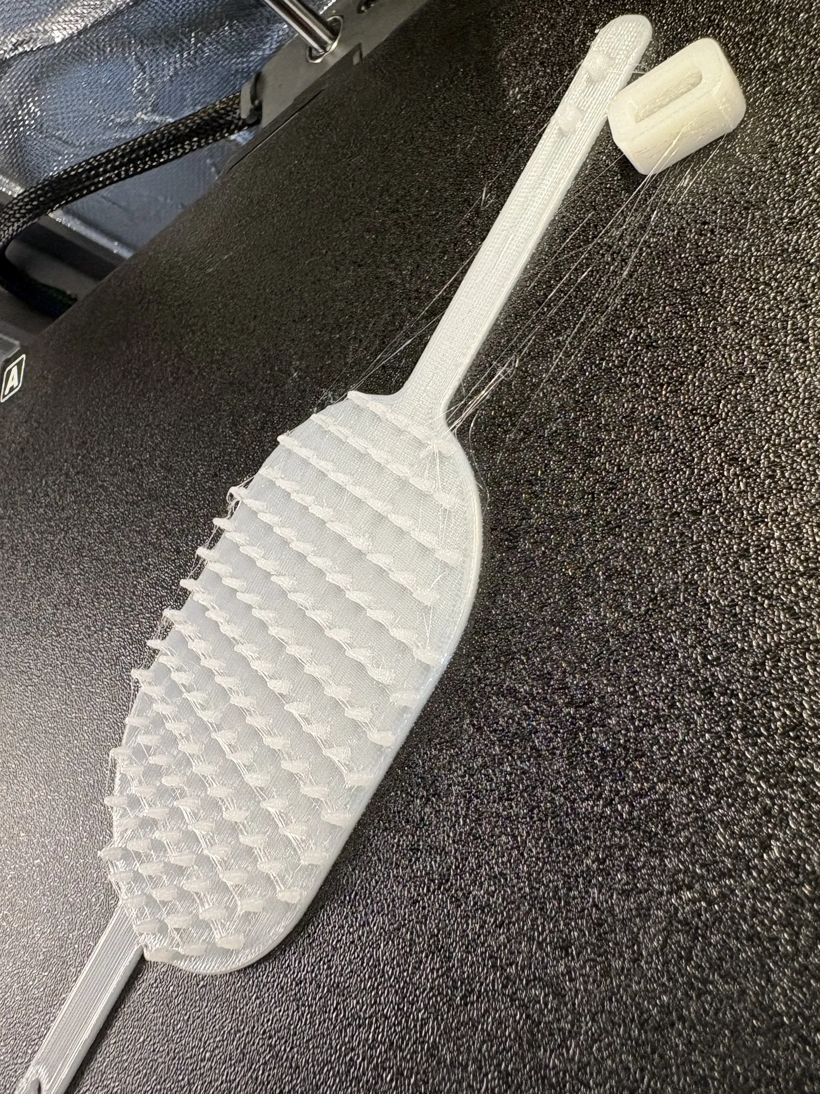 Mình đã in cái lược chải lông này bằng nhựa TPU 95A. Tiếc là mình phải đánh đổi giữa độ bám dính giữa các lớp (layer adhesion) và hiện tượng kéo sợi (stringing), cuối cùng mình chọn ưu tiên độ bền chắc.