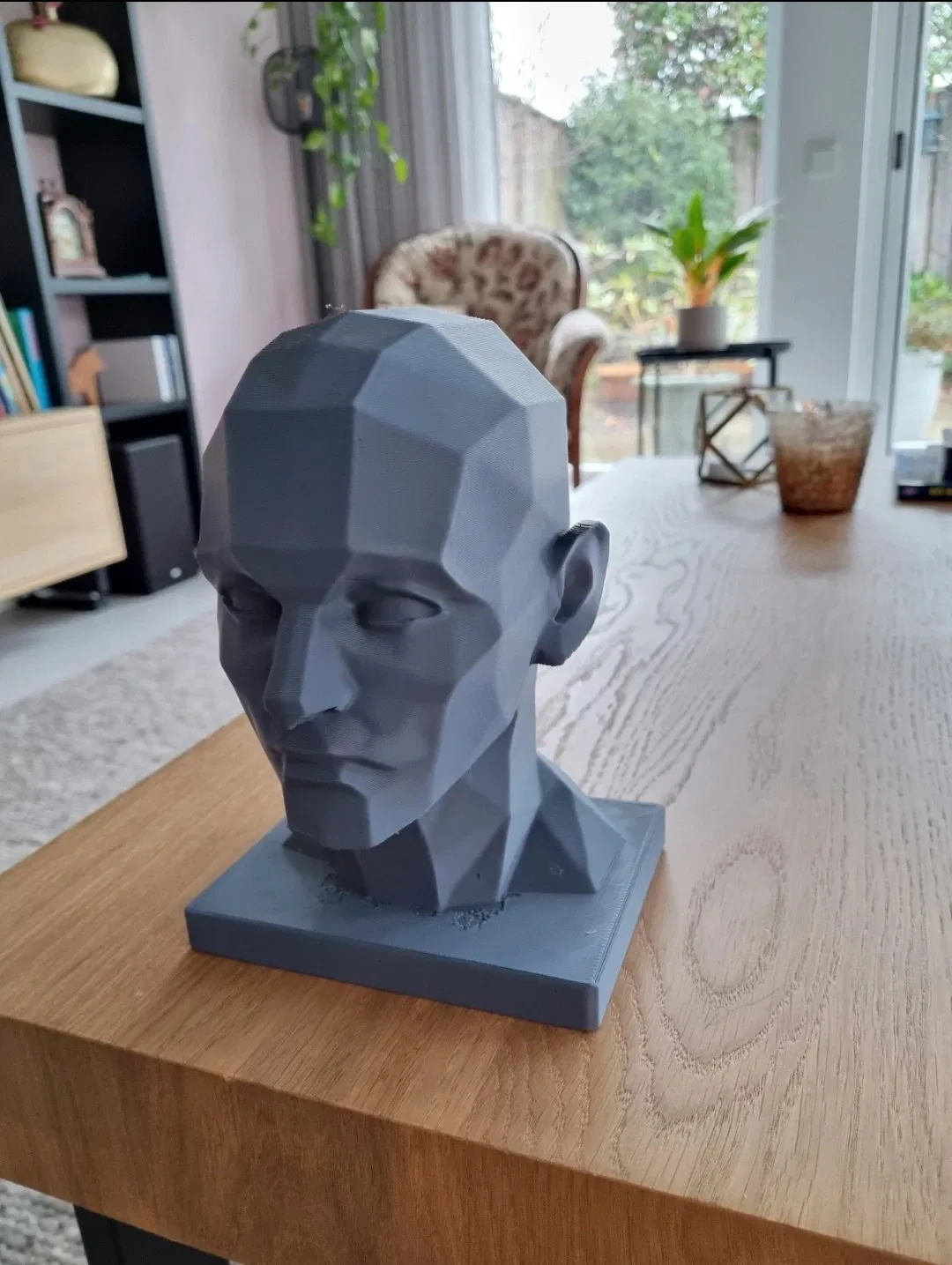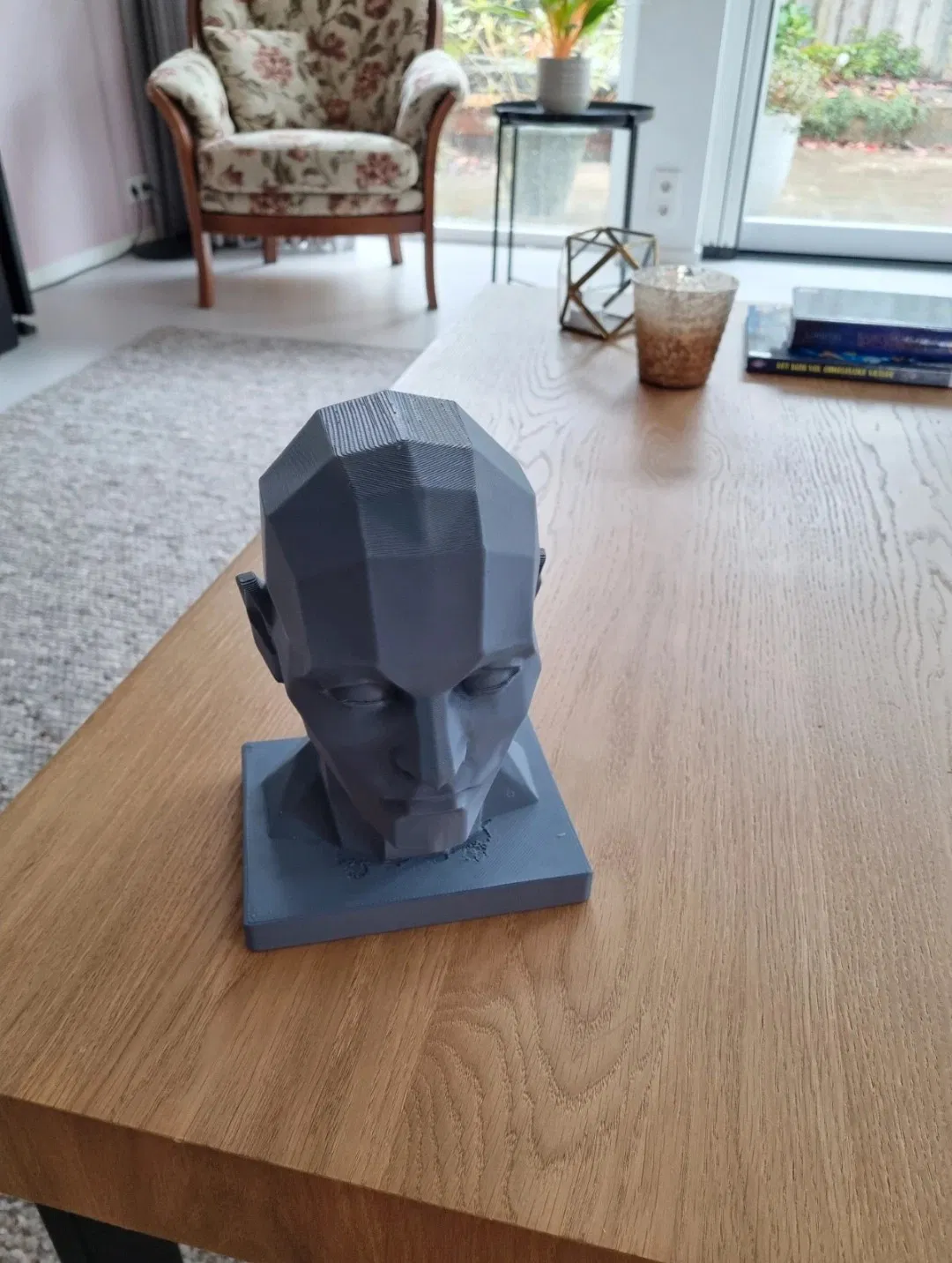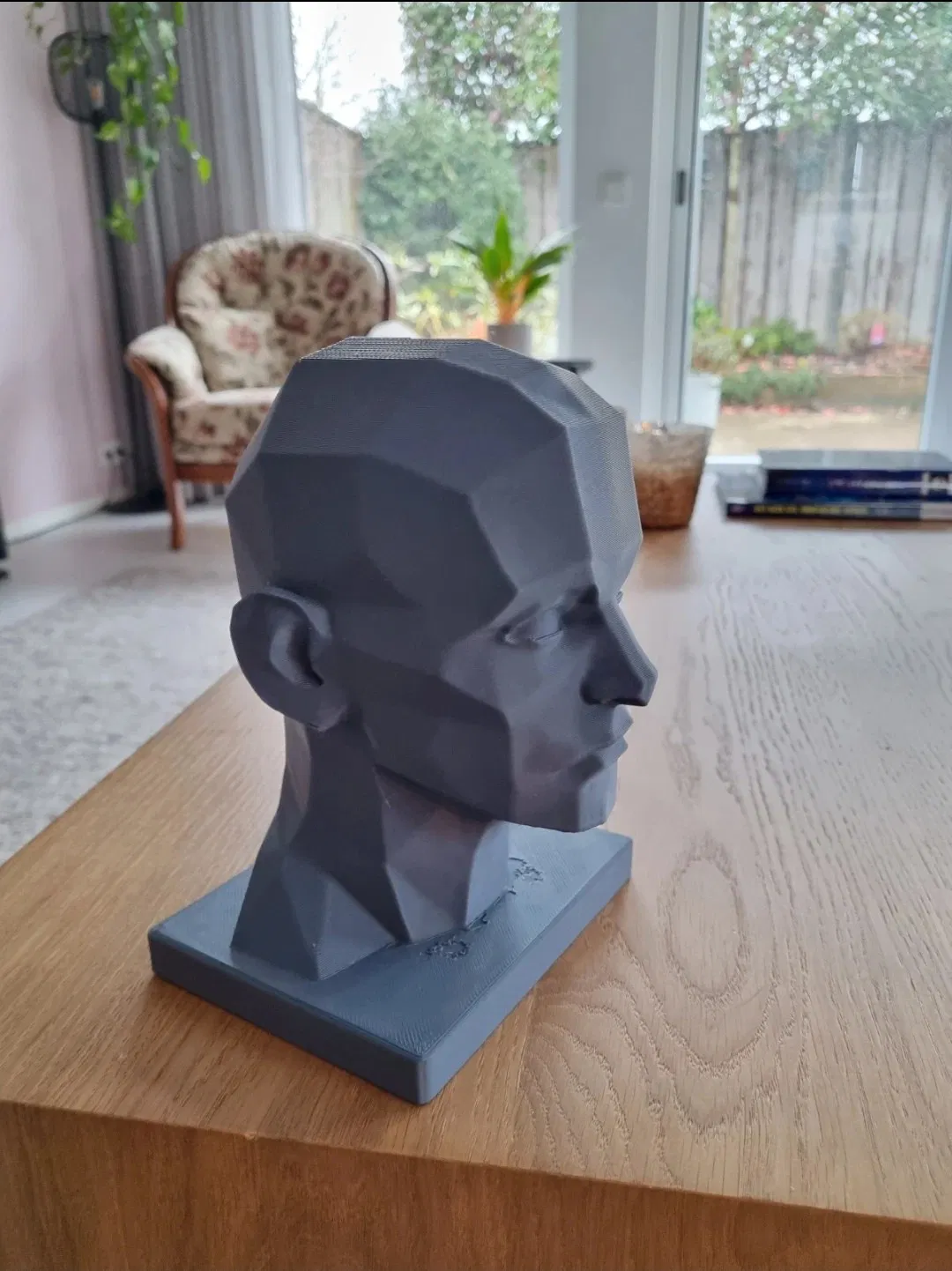 Mẫu hỗ trợ mỹ thuật này giúp bạn nắm bắt các mảng khối và đổ bóng trên đầu người khi vẽ hoặc tô màu chân dung. Các phân đoạn khác nhau trên đầu mô tả hướng đổ bóng lên các bề mặt của đầu từ một nguồn sáng cố định. Mô hình này được làm lại từ một thiết kế trên Thingiverse. Tuy nhiên, bản gốc đó có nhiều lỗi nghiêm trọng ở phần đế và bản thân đầu tượng. Lưu ý rằng các hình ảnh đi kèm là từ tệp STL gốc và các lỗi đó vẫn hiển thị trên bản in. Những khiếm khuyết này đã được mình khắc phục hoàn toàn trong thiết kế mới này. Các hình ảnh minh họa là mẫu đầu kích thước 20cm (kích thước in mặc định), được in bằng máy Creality Hi với đầu phun 6mm, 3 lớp vỏ và độ lấp đầy (infill) 8%. Chất liệu in là nhựa PLA. Bạn sẽ cần dùng hỗ trợ (supports) cho phần cằm, mũi và tai.