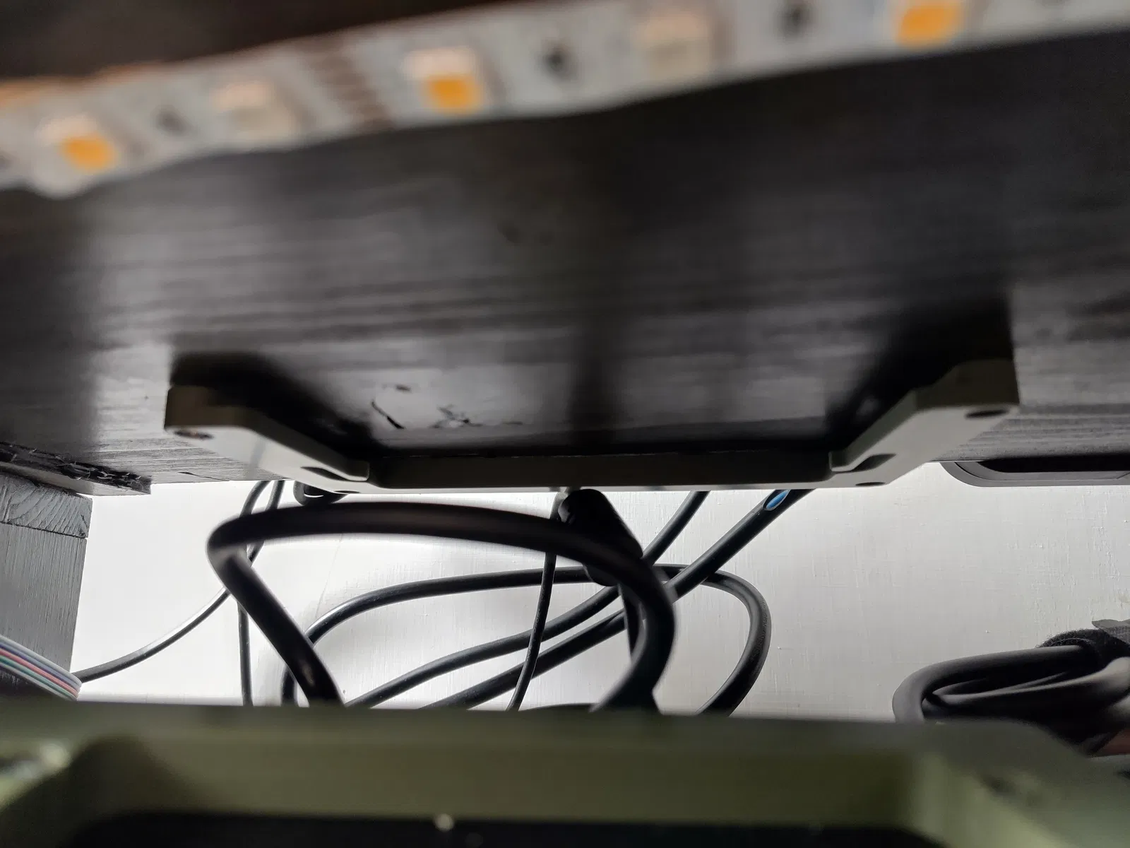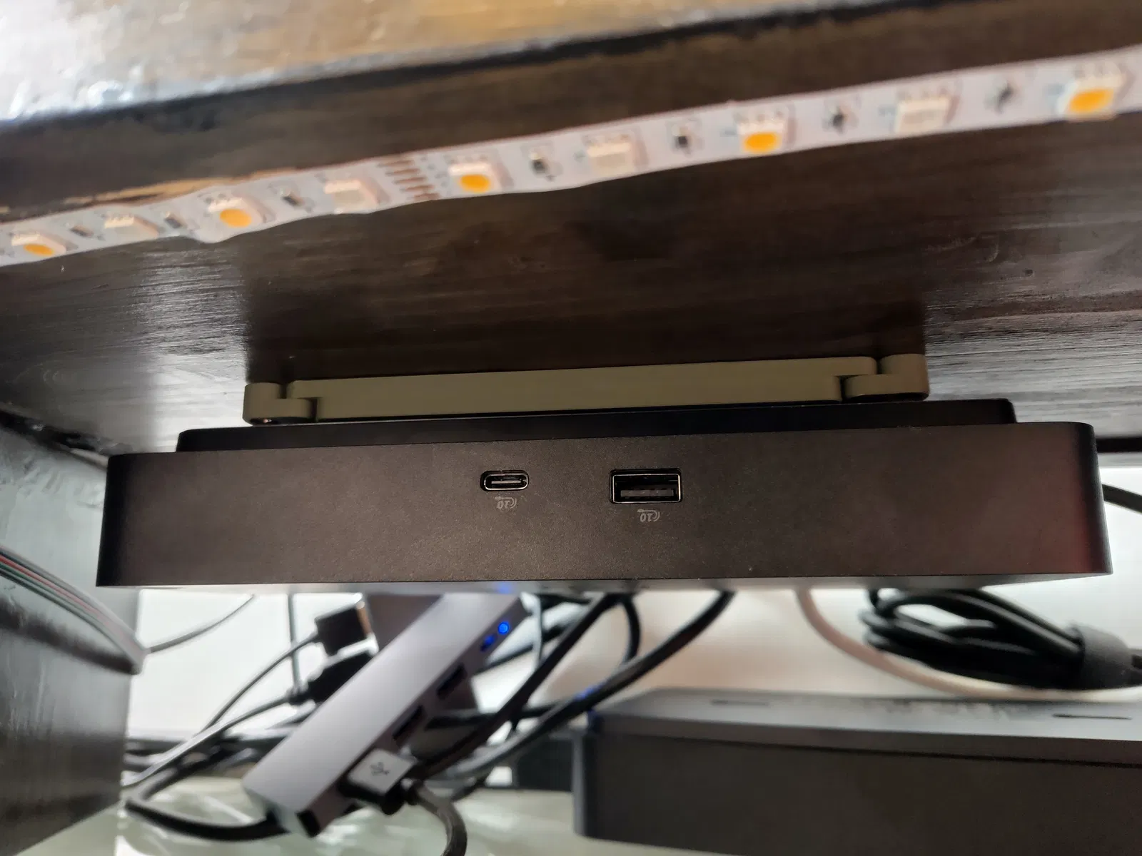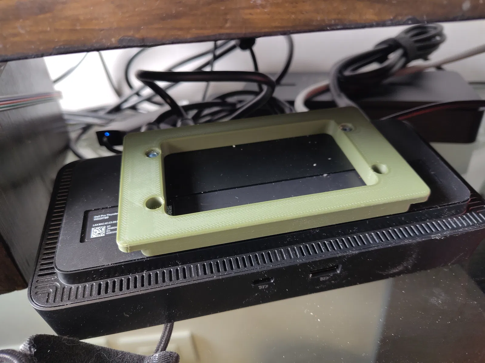 Một phần gắn vào dock thông qua hai lỗ bắt vít M4. Phần còn lại bắt vít cố định vào mặt bàn bằng các loại vít gỗ/vít tôn nhỏ (mình thường dùng vít 2.5x10).
