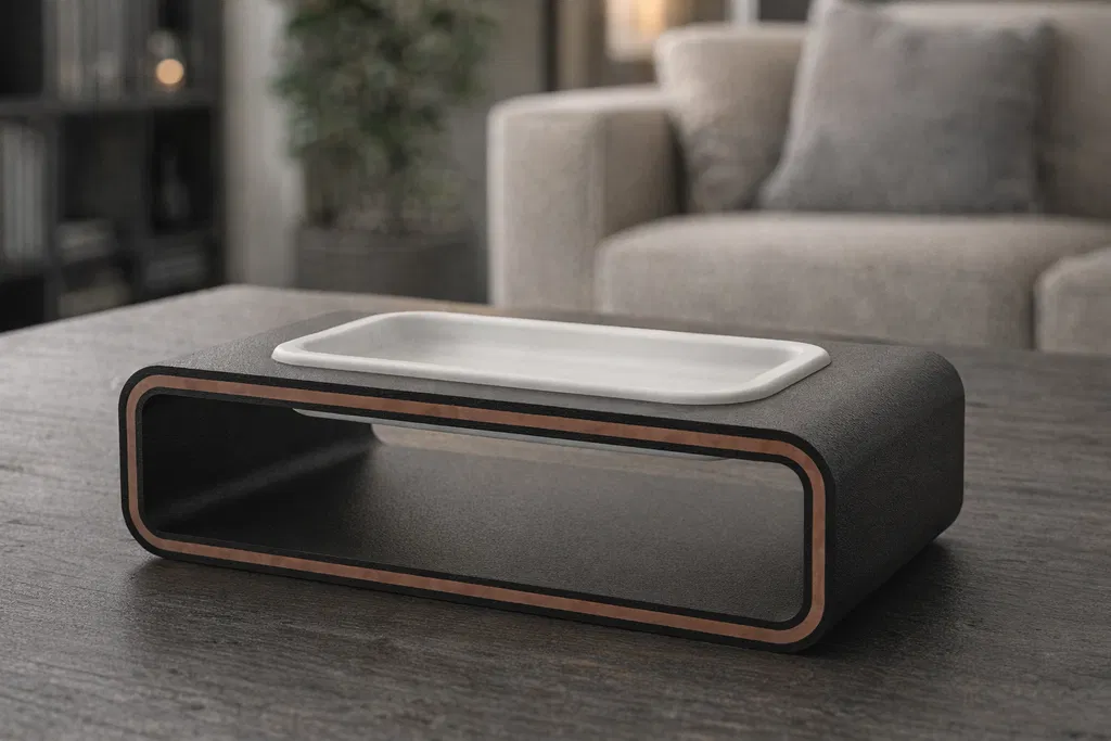 Kích thước tổng thể: 150 × 90 × 40 mm Độ sâu khay trên: 8.5 mm (tính cả viền) Thiết kế: Thân rỗng với khe cắm khay ở trên Phong cách: Tối giản, hiện đại, tiện dụng Vật liệu khuyên dùng: PLA, PETG, ASA