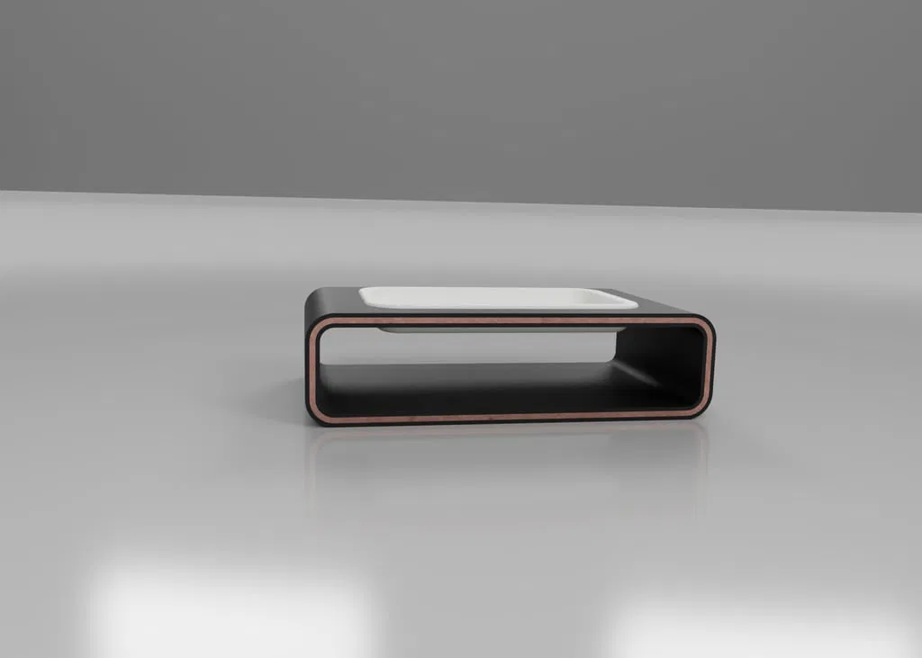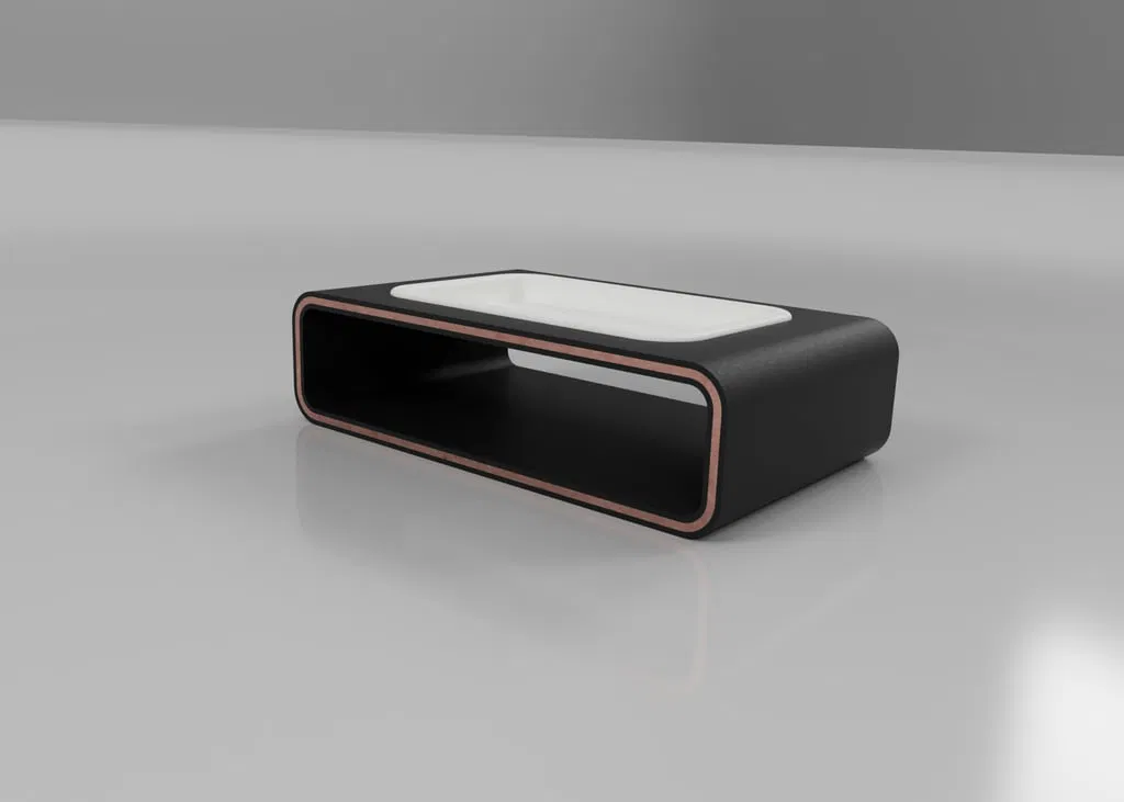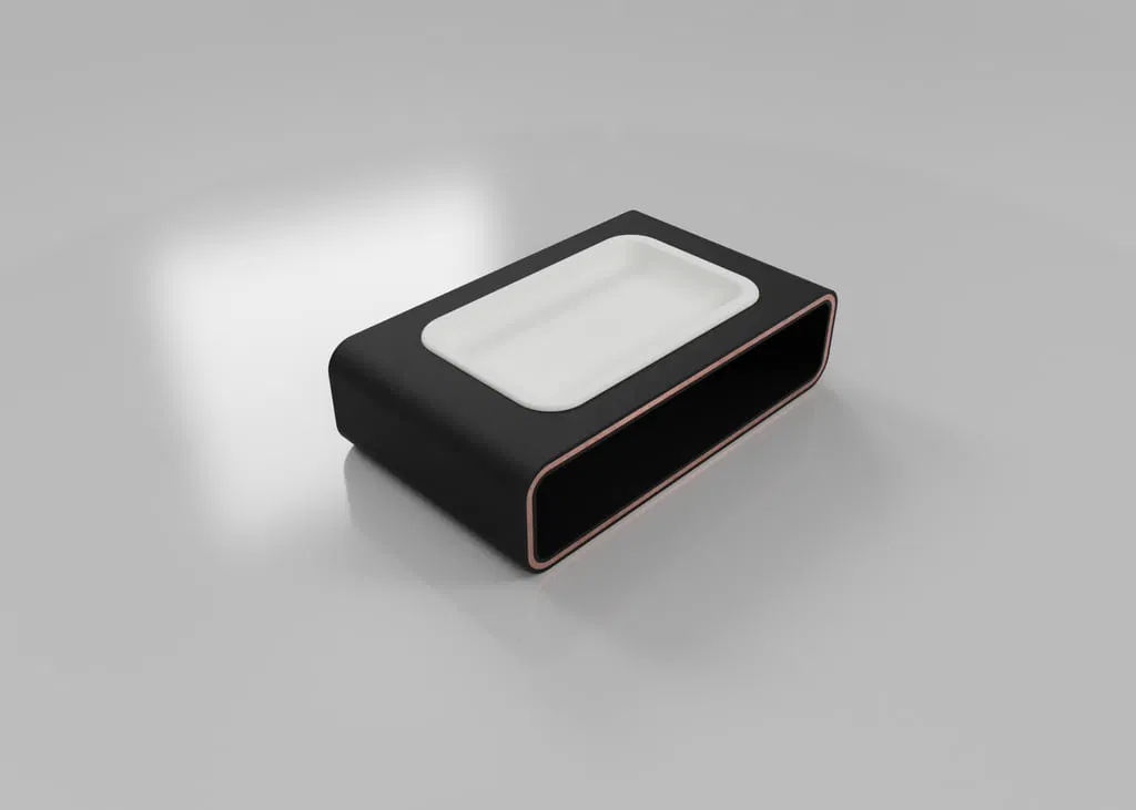 Đây là mẫu khay đựng đồ cá nhân (pocket tray) kiểu dáng hiện đại, thanh lịch, được thiết kế dạng khối chữ nhật rỗng với các cạnh bo tròn. Mặt trên có một tấm khay lõm khớp vào khe cắm chuyên dụng, tạo nên sự tương phản tinh tế và sạch sẽ về chất liệu cũng như màu sắc.