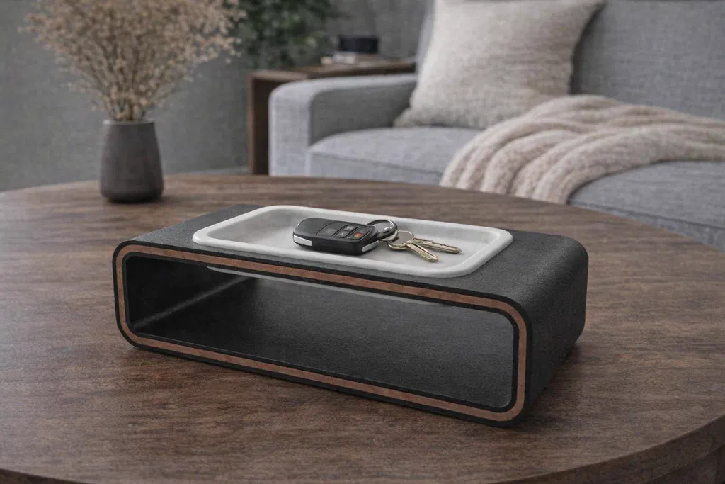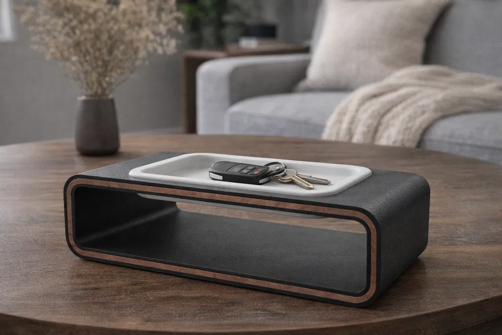 Hoàn hảo cho khu vực cửa ra vào, phòng khách, bàn làm việc hoặc tủ đầu giường. Lý tưởng để đựng chìa khóa, tiền xu, các phụ kiện nhỏ hoặc vật dụng cá nhân hàng ngày. Bạn có thể in khay bằng màu sắc tương phản để tạo vẻ ngoài tinh tế hơn.
