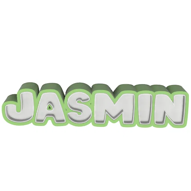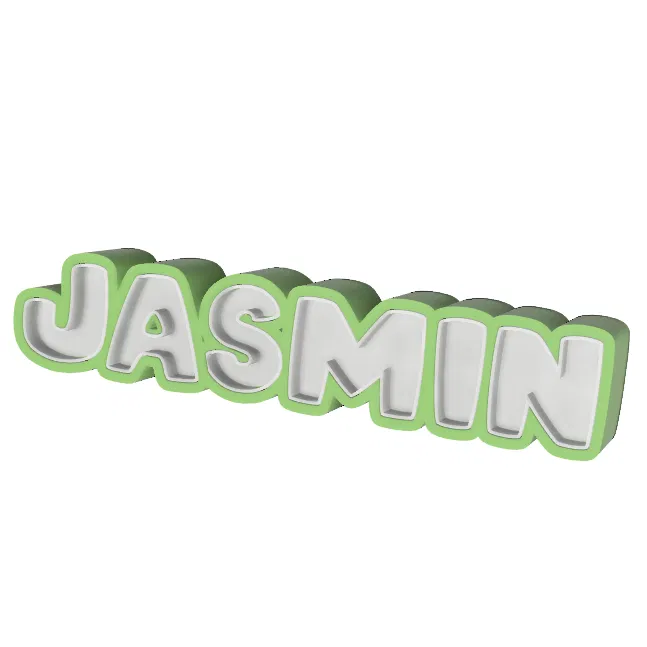Mẫu bảng tên 3D "JASMIN" cực xinh xắn, thiết kế phông chữ bo tròn mềm mại. Phù hợp để trang trí bàn làm việc, phòng ngủ hoặc làm quà tặng cá nhân hóa. Dễ in, không cần support, phù hợp cho mọi máy in 3D.