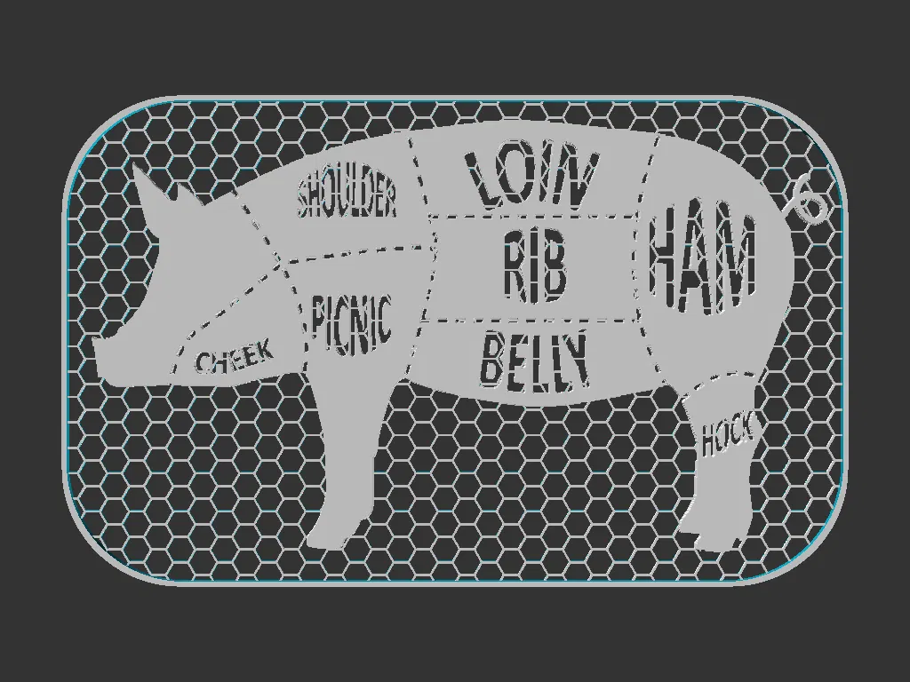 Mẫu bảng hiệu 100x160mm in 3D với hình vẽ biểu đồ các phần thịt heo cực kỳ chi tiết. Hỗ trợ in 2 màu dễ dàng, phù hợp để trang trí nhà bếp hoặc cửa hàng thịt. Đi kèm cả file Mesh và Solid cho bạn lựa chọn.