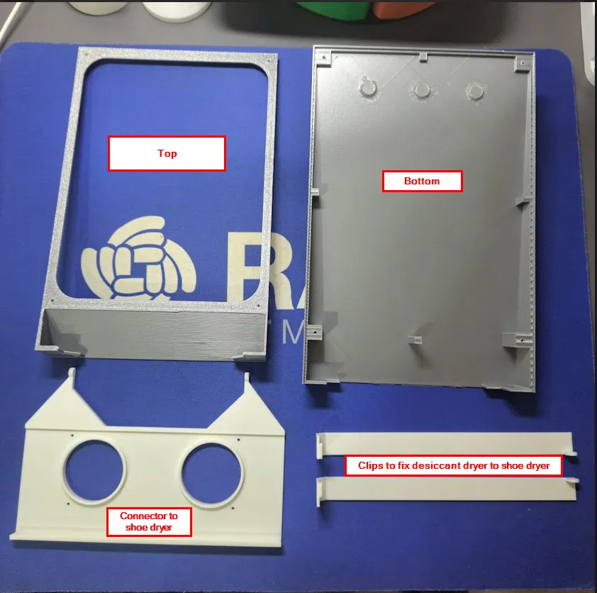 Tận dụng máy sấy giày điện giá rẻ để làm máy sấy hạt chống ẩm cực hiệu quả. Dự án bao gồm các file in 3D cần thiết để lắp ráp, giúp bạn tiết kiệm chi phí tái tạo hạt chống ẩm cho hộp AMS và tủ đựng nhựa in 3D của mình.