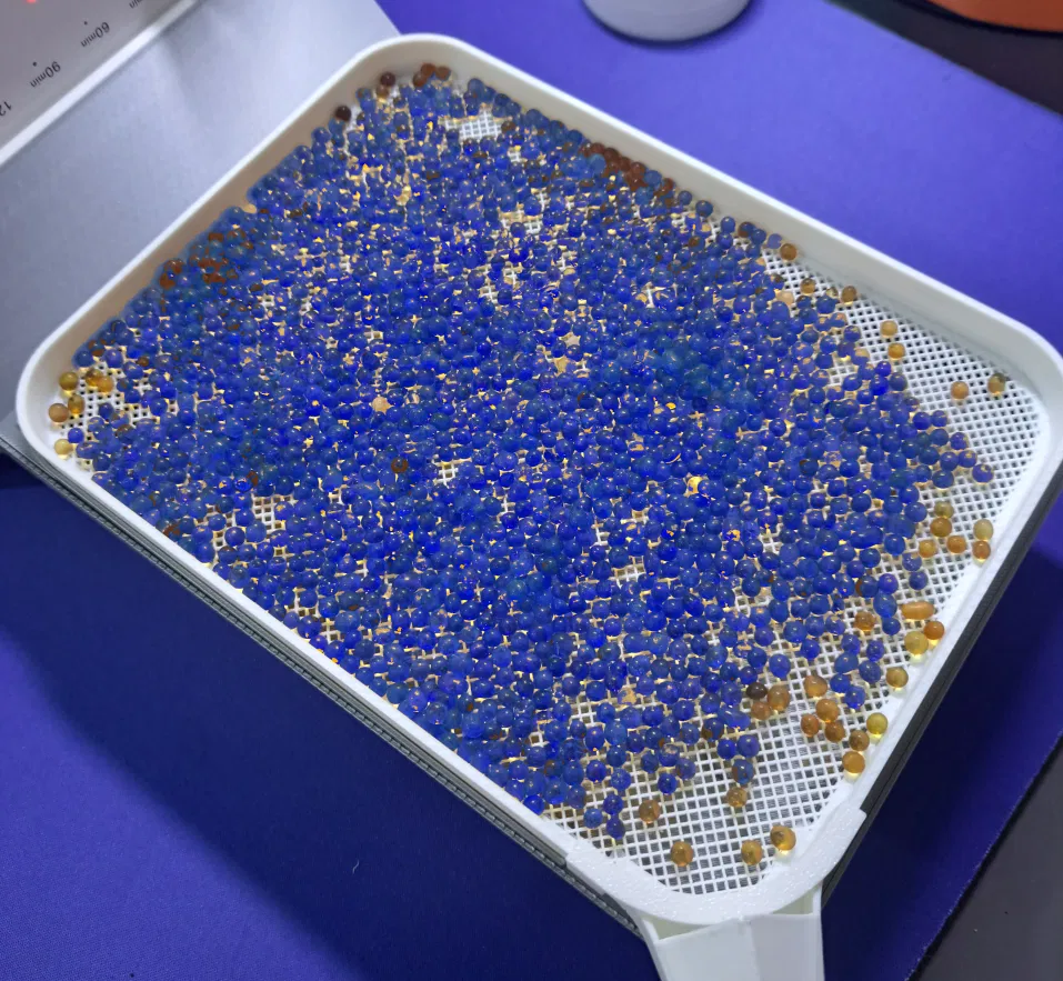 - Hạt đã hút no ẩm (chuyển màu đen/xanh đậm): Mất khoảng 2-3 tiếng để trở về màu cam ban đầu.