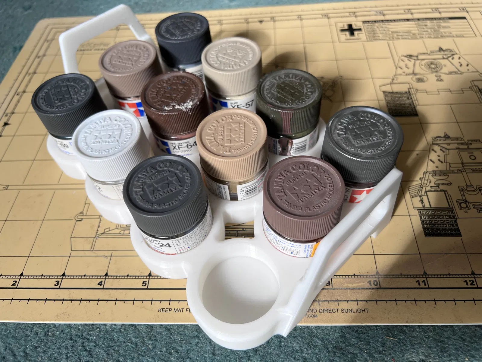 Một giá sơn/tàu sân bay có thể xếp chồng lên nhau cho các chậu sơn 23ml Tamiya.