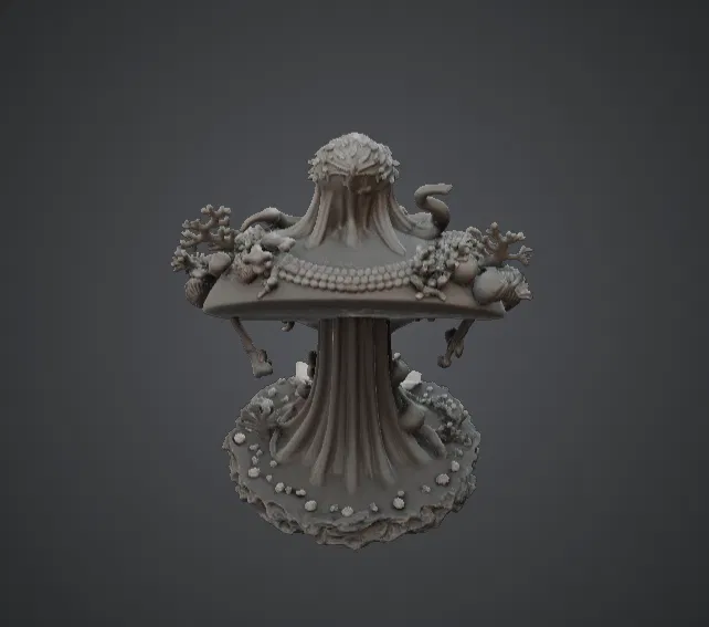 Mẫu Cosmic Sea Horror Bust này mô tả một sinh vật cổ xưa đầy ma quái đang trồi lên từ vực thẳm đại dương. Với khuôn mặt giống như hộp sọ đáng sợ cùng những xúc tu ngoằn ngoèo tạo thành bộ râu và cơ thể, thực thể này trông như đang bị bao quanh bởi san hô, vỏ sò và các loài sinh vật biển kỳ lạ. Thiết kế này gợi lên hình ảnh một vị thần bị lãng quên từ những rãnh sâu nhất dưới đáy biển. Những chi tiết tinh xảo trên các xúc tu, cấu trúc san hô và bề mặt biển tạo nên một vẻ đẹp đầy ám ảnh dưới đáy nước. Các vật trang trí nhiều lớp và cổ vật đại dương treo trên sinh vật mang lại cảm giác về một giáo phái cổ xưa hoặc một nền văn minh đã mất từng tôn thờ vị thần quái dị này.