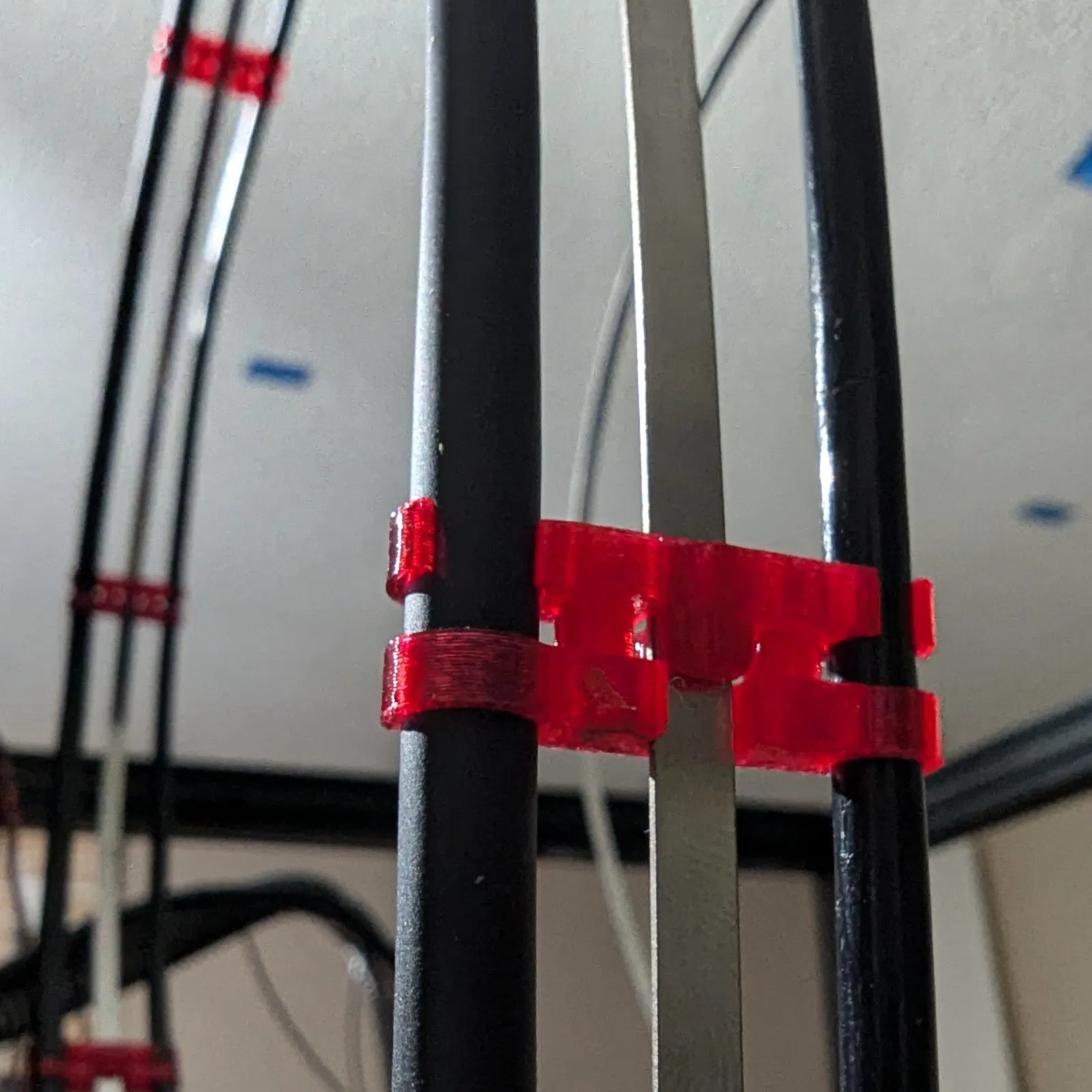 Mình vẫn đang trong quá trình lắp ráp chiếc Proforge 5 của mình nên các món này chưa được thử nghiệm trên máy in đang hoạt động. Mình cũng chưa rõ liệu chúng có gây ra vấn đề gì ngoài ý muốn hay không (ví dụ như bị mềm, gãy, hay vướng vào các đầu in khác... ai mà biết được!). Tuy nhiên, chúng có vẻ giữ chặt dây cáp và ống sợi nhựa vào thanh dẫn cáp rất tốt, nên mình hy vọng chúng sẽ hiệu quả bằng hoặc hơn cả dây rút (zip ties)! Hiện tại mình gọi đây là "phiên bản 0.9". Nếu sau này mình có dịp test kỹ và hài lòng với kết quả, mình sẽ cập nhật mô tả và nâng cấp phiên bản file sau (đây là lần đầu mình đăng bài lên Printables nên cũng chưa rõ các bước sau này thế nào).