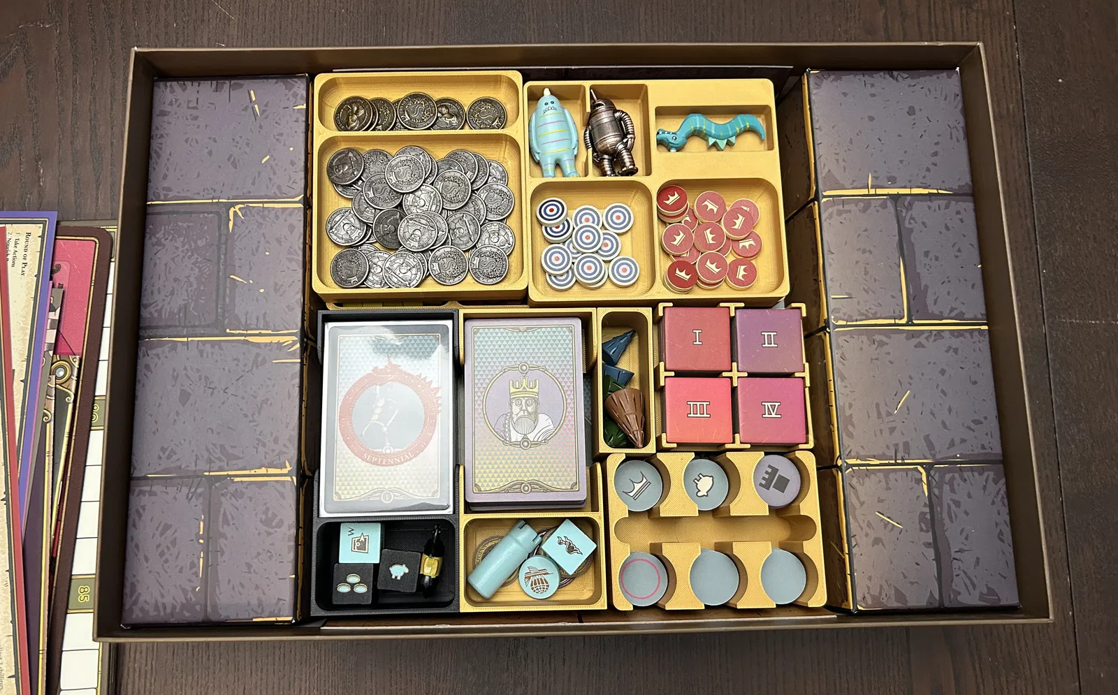 Bộ insert này được thiết kế cho phiên bản Septennial Edition đi kèm với các mảnh/thẻ bài bổ sung từ Kickstarter và bản mở rộng Queen's Army (tuy nhiên mình nghĩ kích thước hộp vẫn giống với phiên bản gốc).