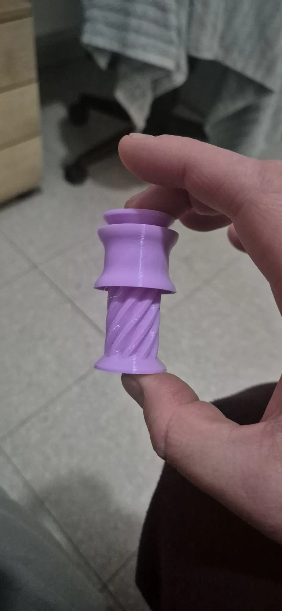 Điểm đặc biệt của thiết kế V4 nằm ở cấu trúc "print-in-place" (in nguyên khối không cần lắp ráp), bao gồm một trục xoắn ốc ở giữa, một đai ốc và một phần vỏ ngoài được lồng vào nhau. Ngay khi vừa in xong, các bộ phận đã được khóa chặt vào vị trí nhưng vẫn cho phép chuyển động xoay linh hoạt. Bạn chỉ cần cầm phần đầu và phần thân, sau đó vặn nhẹ nhàng để cảm nhận chuyển động xoắn ốc êm ái, một trải nghiệm xúc giác rất thú vị cho những lúc cần xả stress.