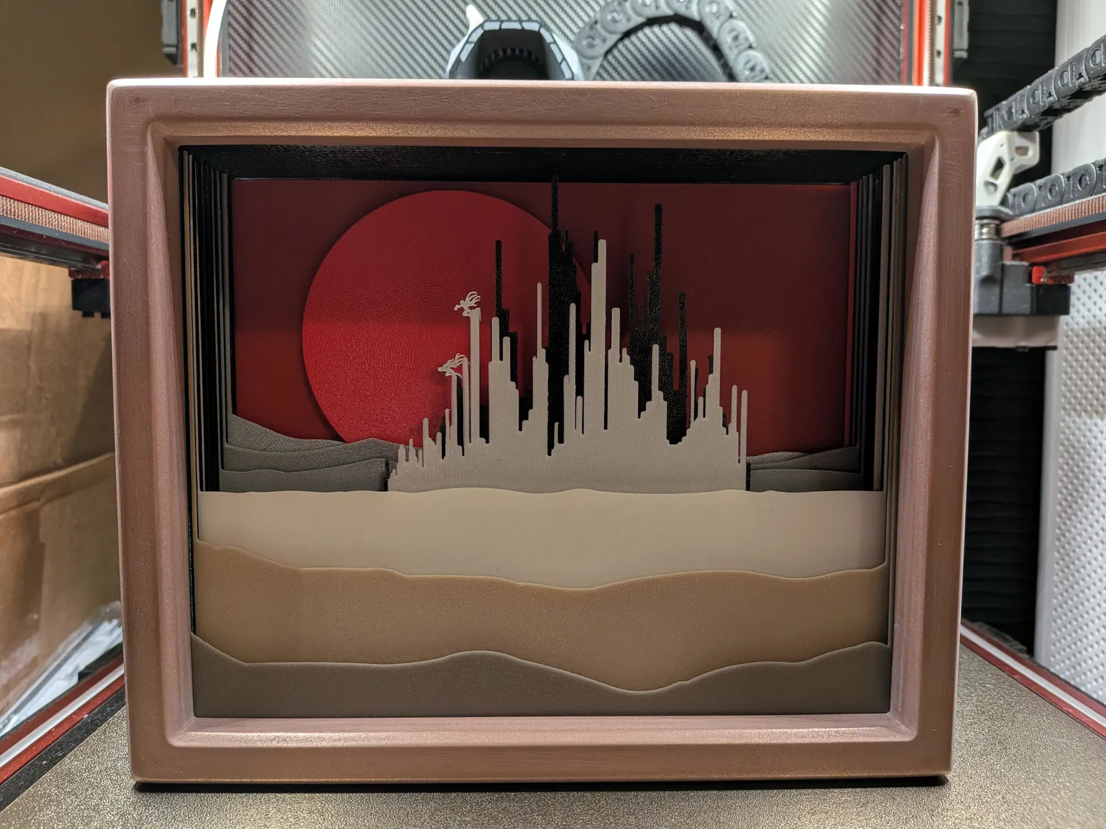 Một mẫu shadowbox Luthadel từ series Mistborn cực kỳ ấn tượng để in 3D. Hướng dẫn chi tiết bao gồm file in và file DXF cho ai muốn thử nghiệm với công nghệ cắt laser. Món đồ trang trí tuyệt vời cho fan của Brandon Sanderson.