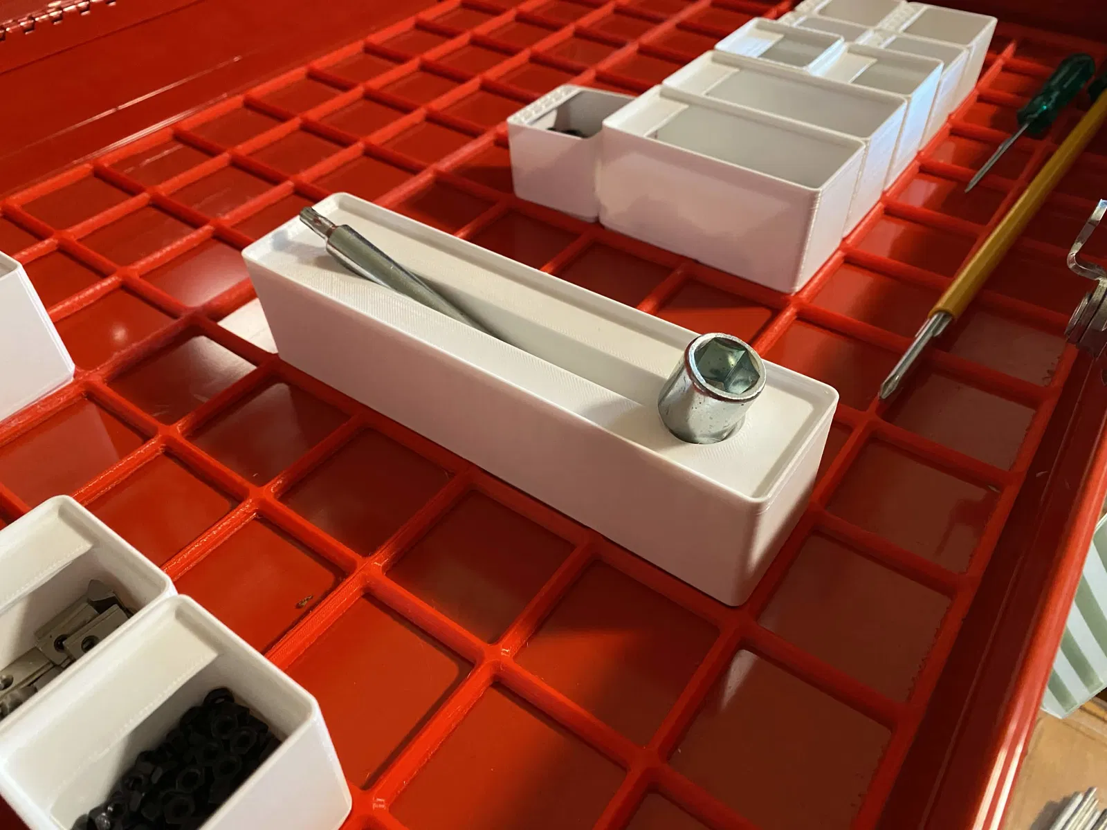 - Thiết kế chuẩn Gridfinity, giúp tối ưu hóa không gian lưu trữ trên bàn làm việc hoặc trong thùng đồ nghề một cách khoa học.