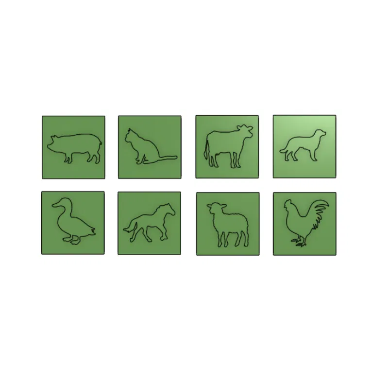 Thêm một bộ khuôn đóng dấu hình các loài vật trong nông trại được thiết kế chuyên biệt để lắp vừa với máy "Stamp Buddy". Bạn có thể tìm thấy thông tin chi tiết về kích thước và cách lắp ráp ở mẫu máy đóng dấu gốc.