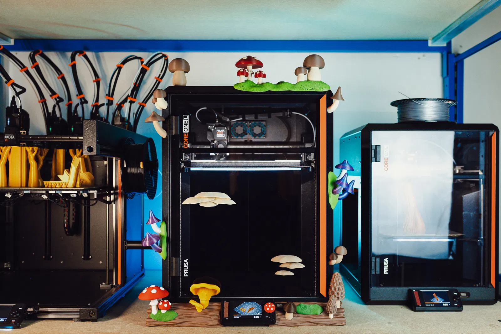 Bộ nấm hít nam châm giúp biến chiếc máy in Prusa Core One L của bạn thành một khu rừng nhỏ xinh xắn. 🍄 Đây là bộ sưu tập các phụ kiện gồm nấm, rêu, khung gỗ và nút bấm được thiết kế dạng module - tất cả đều gắn vào máy in bằng nam châm để bạn có thể tự do di chuyển và tạo nên khung cảnh riêng cho mình. 🌱 Bạn cũng có thể dùng chúng để trang trí tủ lạnh nữa đấy!