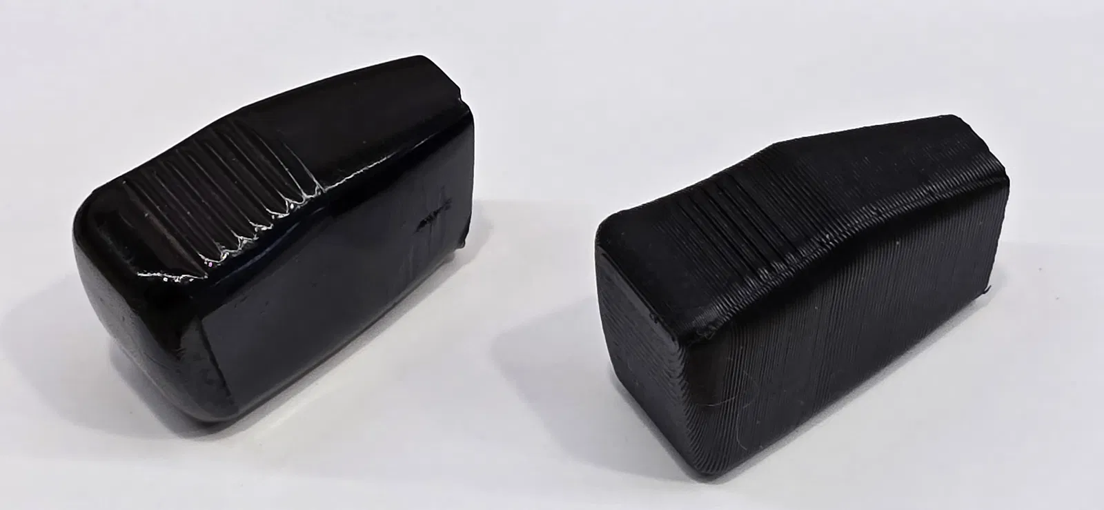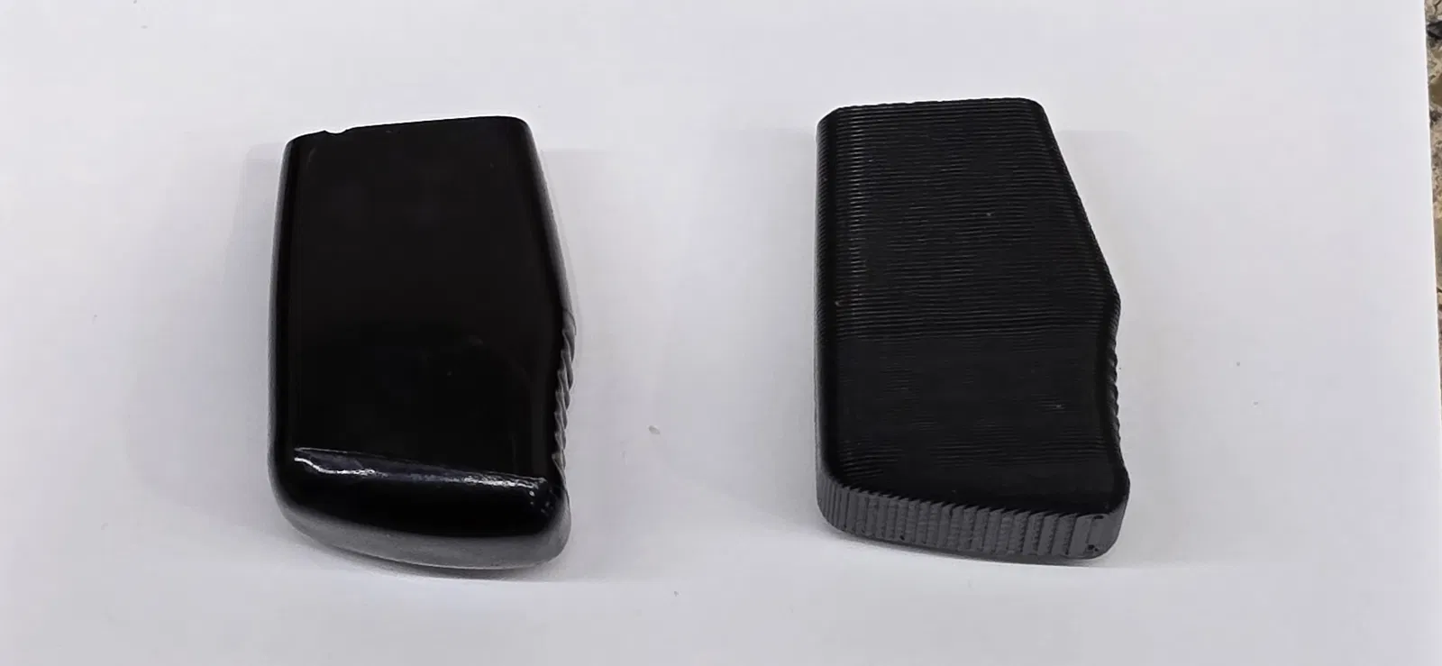 Trong quá trình phục dựng chiếc xe FORD Gen2 Bronco đời 1978 của mình, mình đã bị thiếu mất cái lẫy ghế bằng nhựa ở bên ghế phụ. Kỹ năng thiết kế 3D của mình chưa phải là đỉnh cao nên có thể một vài số đo sẽ hơi lệch một chút. Tuy nhiên, linh kiện này ngay cả bên LMC cũng không còn bán nữa, và chỉ với vài xu tiền nhựa in, cái lẫy này dùng vẫn rất ngon lành. Linh kiện zin nằm bên trái, còn linh kiện mình in nằm bên phải.