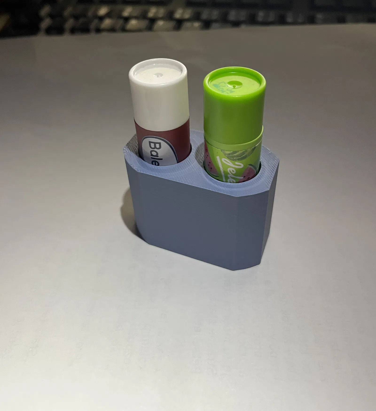 Mẫu thiết kế giá đỡ nhỏ gọn dành cho 2 thỏi son dưỡng môi, tương thích với nhiều thương hiệu phổ biến như Balea, Labello hay Dove. Với chiều cao 7cm và trọng lượng chỉ 4,8g, đây là phụ kiện in 3D tiện lợi giúp bạn sắp xếp son môi ngăn nắp hơn.