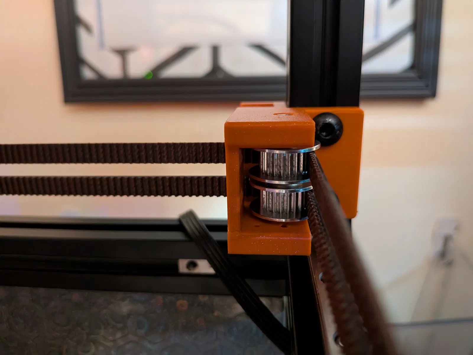 Đây là các chi tiết gá idler phía sau được thiết kế lại, cho phép anh em sử dụng toothed idlers thay thế cho vòng bi trơn 695 có trong danh sách linh kiện (BOM) gốc. LƯU Ý RẰNG CÁC TOOTHED IDLERS TỪ XY JOINTS TRONG BOM SẼ KHÔNG DÙNG ĐƯỢC. Phần gờ dày của chúng không chừa đủ không gian để đặt vòng đệm (washer) giữa các vòng bi. Anh em cần sử dụng loại idler 20t có tổng chiều cao 9mm như loại của Powge hoặc Winnsinn. Cấu trúc lắp vòng bi sẽ là: vòng đệm 1mm -> idler -> vòng đệm 1mm -> idler -> vòng đệm 1mm. Mình cũng không rõ liệu việc này có thực sự cải thiện VFA hay không, nhưng về mặt lý thuyết thì là có.
