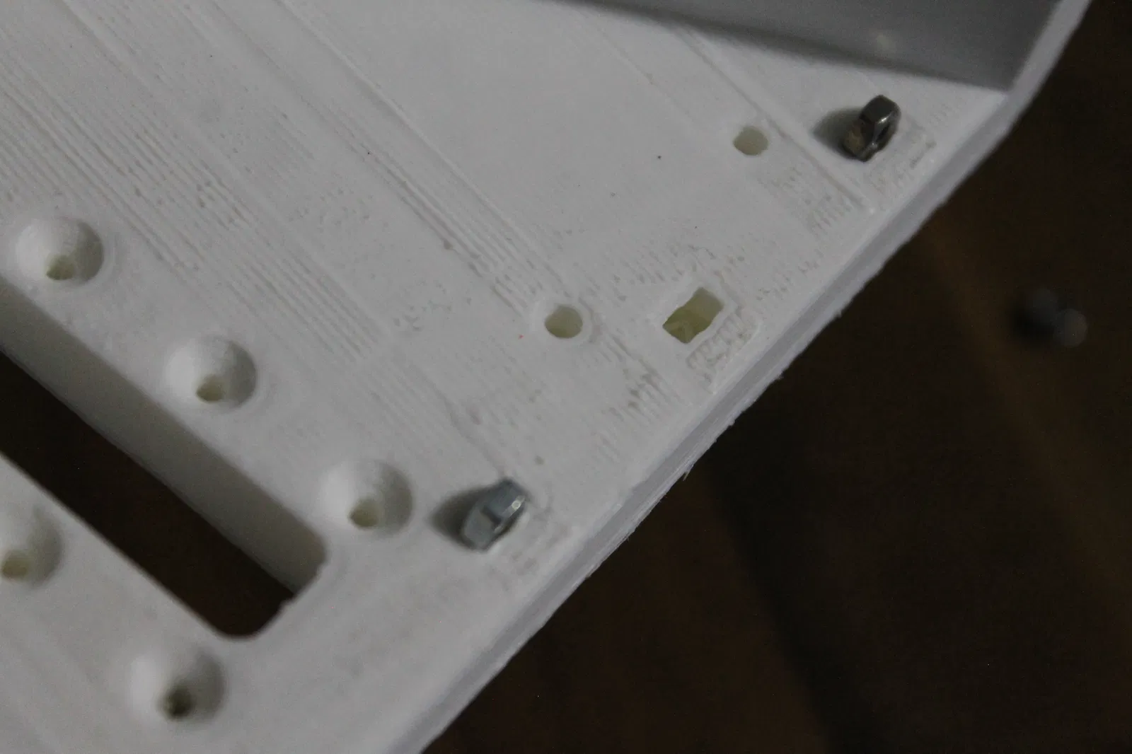 Đặt các đai ốc M3 vào hốc bên trong. Nếu máy in chuẩn, chúng sẽ khớp dễ dàng. Lắc nhẹ để đai ốc nằm phẳng. Độ sâu hốc được thiết kế để vít 12 mm vừa khít mà không trồi ra ngoài.