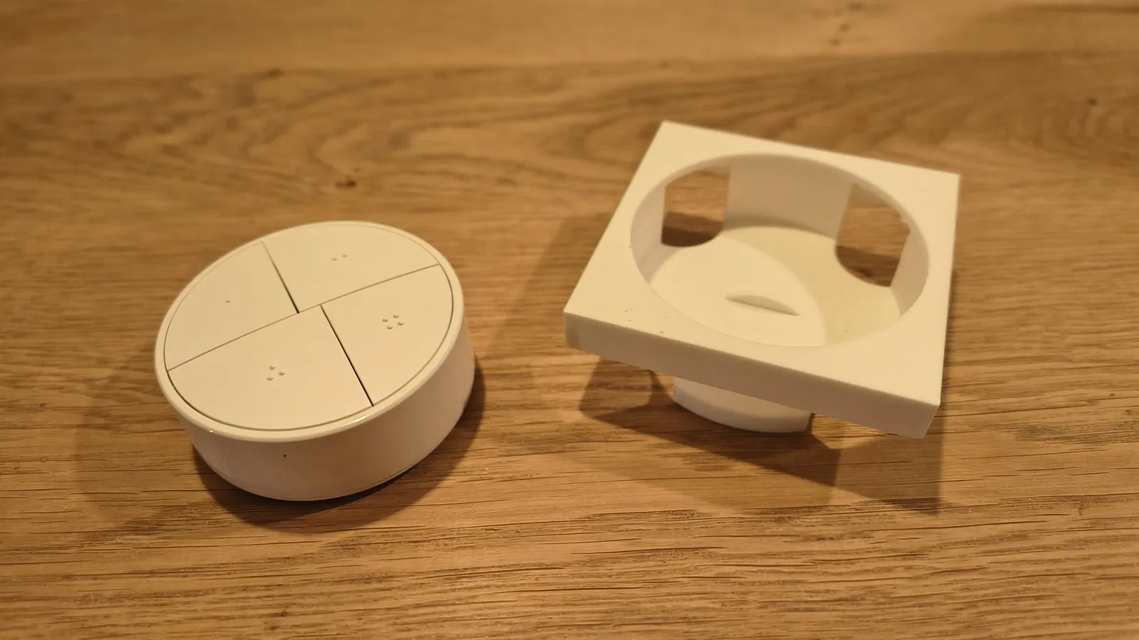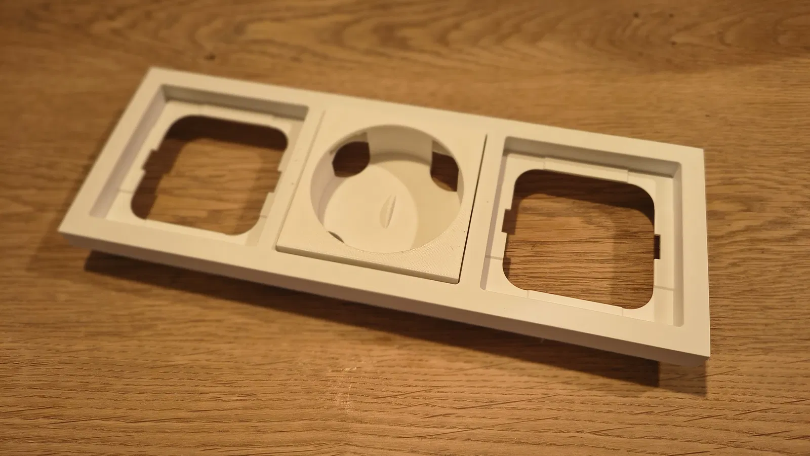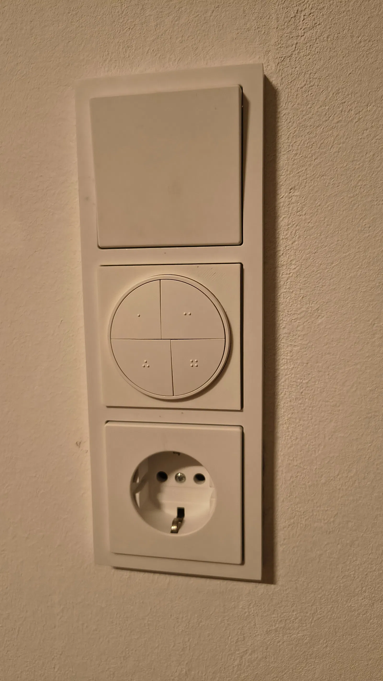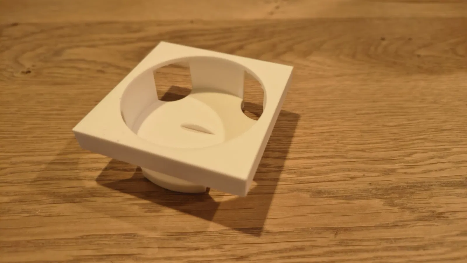 Với cái adapter này, mình đã gắn được công tắc SONOFF Orb 4-in-1 vào khung Busch Jäger Future Linear đang dùng sẵn trong nhà. Công tắc sẽ nằm gọn trong adapter và được giữ chắc chắn bằng các viên nam châm tròn 5mm đặt bên trong. Để gắn vừa cái adapter vào khung, bạn cần cắt bớt một chút phần bên trong khung. Mình đã dùng máy mài cầm tay (Dremel) để xử lý. Bạn chỉ cần mài bớt một chút cho đến khi adapter lọt vừa và bám chắc vào khung là được. Cách này giúp mình không phải chế thêm mấy cái ngàm hay khung giữ phức tạp gì cả.