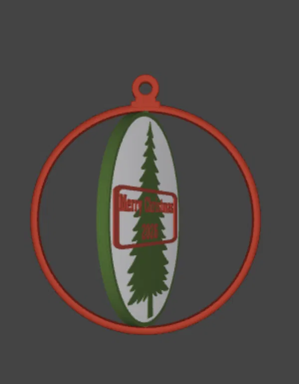 Thiết kế này bao gồm một vòng tròn khung bên ngoài cố định và một tâm ở giữa có thể xoay tròn 360 độ quanh trục. Hình ảnh cây thông Noel cùng dòng chữ "Merry Christmas 2026" được khắc nổi bật ở phần tâm, tạo nên điểm nhấn tinh tế đậm chất Giáng sinh. Việc sở hữu một món đồ chơi bằng 3D printing không chỉ giúp cây thông của bạn trở nên ấn tượng mà còn là chủ đề thú vị để khách đến chơi nhà phải trầm trồ khen ngợi.