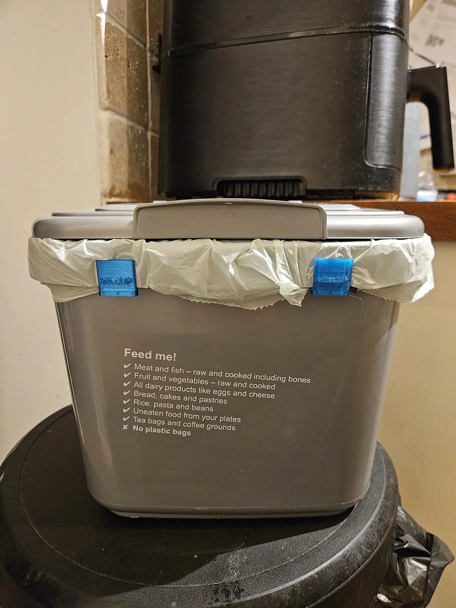 Giải pháp đơn giản để giữ túi rác tự phân hủy không bị tuột khỏi vành thùng rác hữu cơ. Bộ kẹp này nhỏ gọn, dễ in bằng nhựa PLA hoặc PETG, giúp cố định túi chắc chắn mà không cần mở nắp thùng, ngăn chặn mùi hôi và côn trùng hiệu quả.