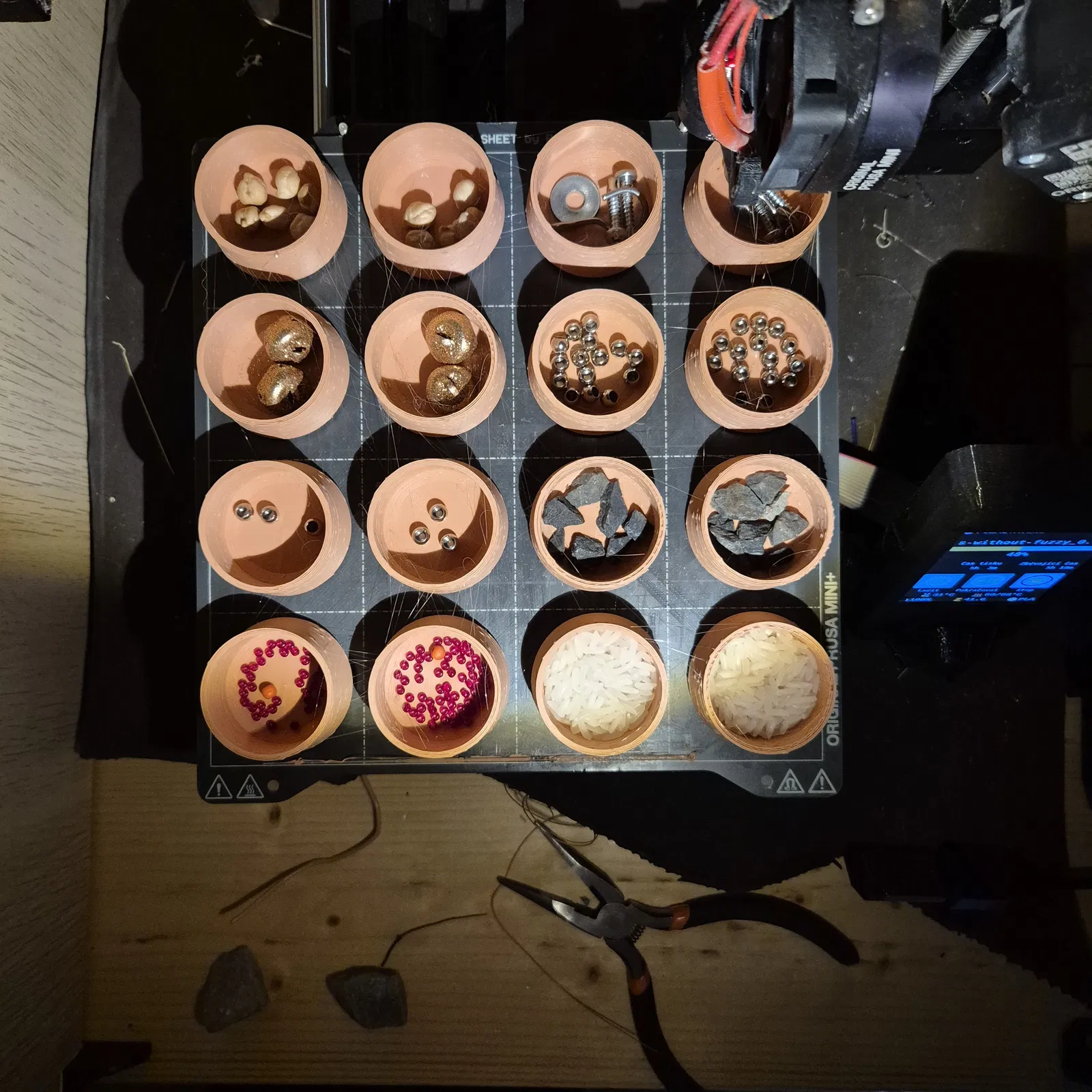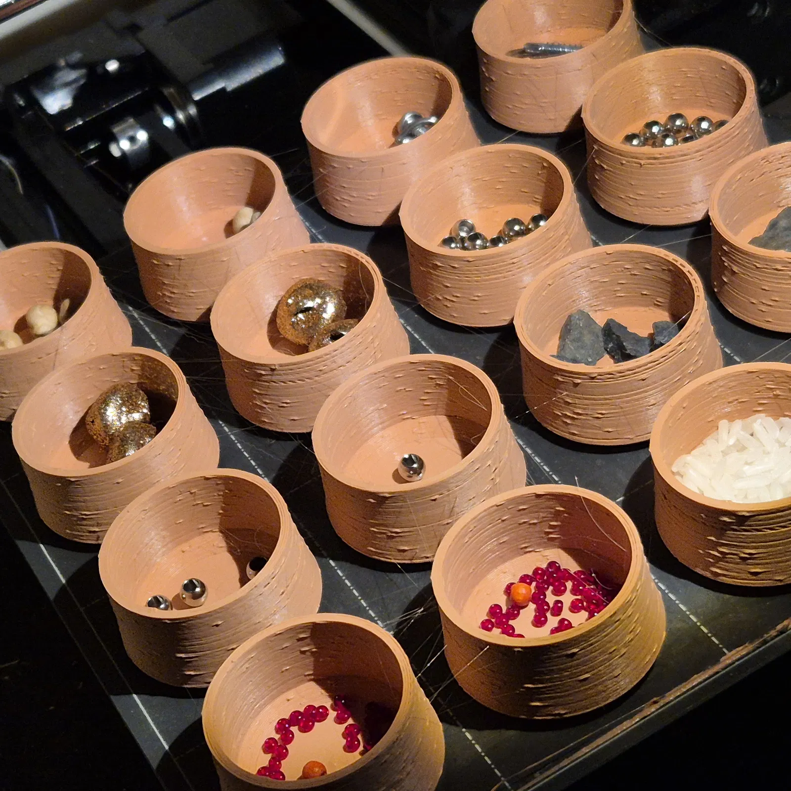 ⚠ Quan trọng: Thiết lập tạm dừng in (pause) khoảng giữa chừng, cho vật liệu vào bên trong, sau đó tiếp tục in tiếp.