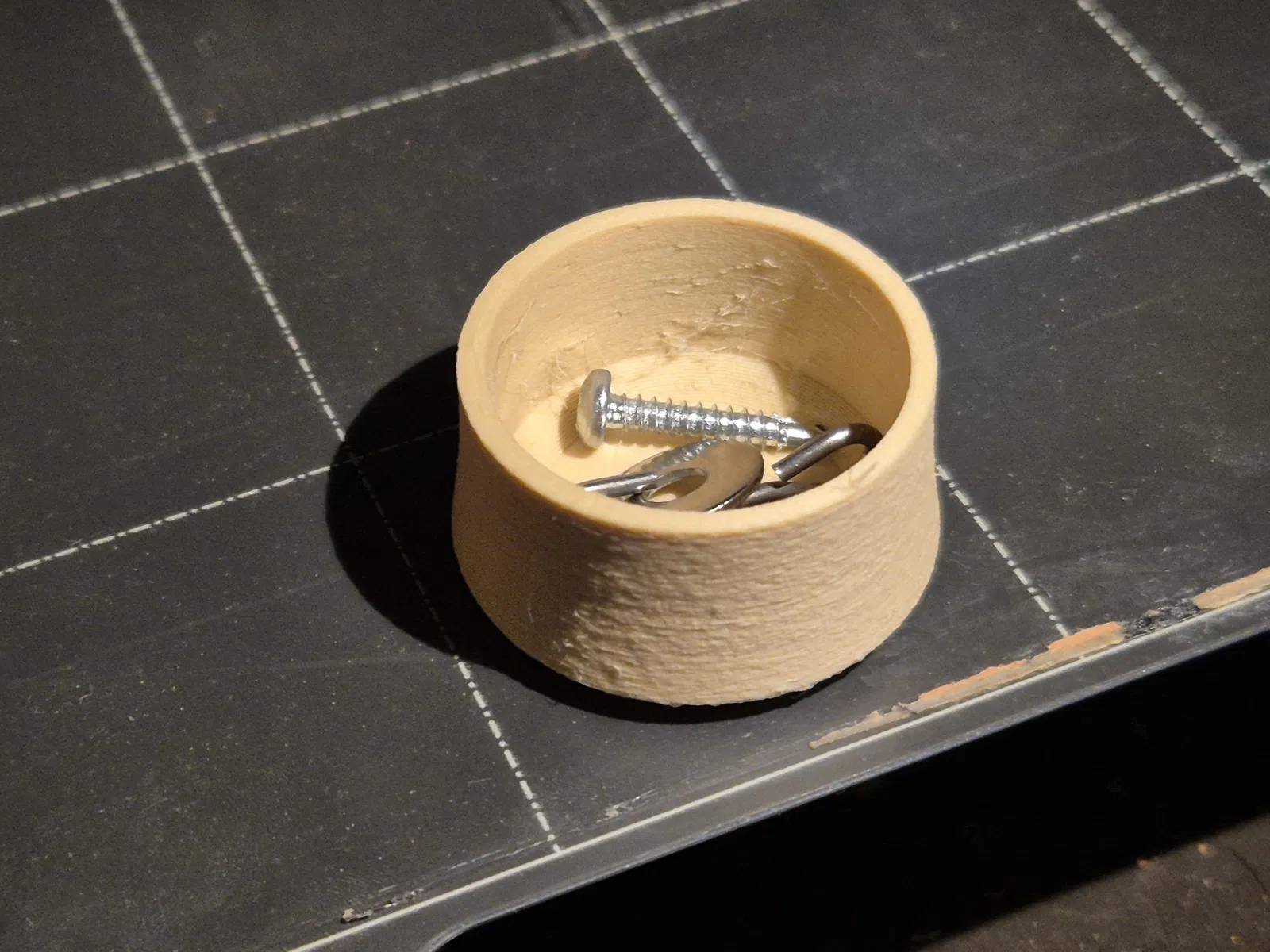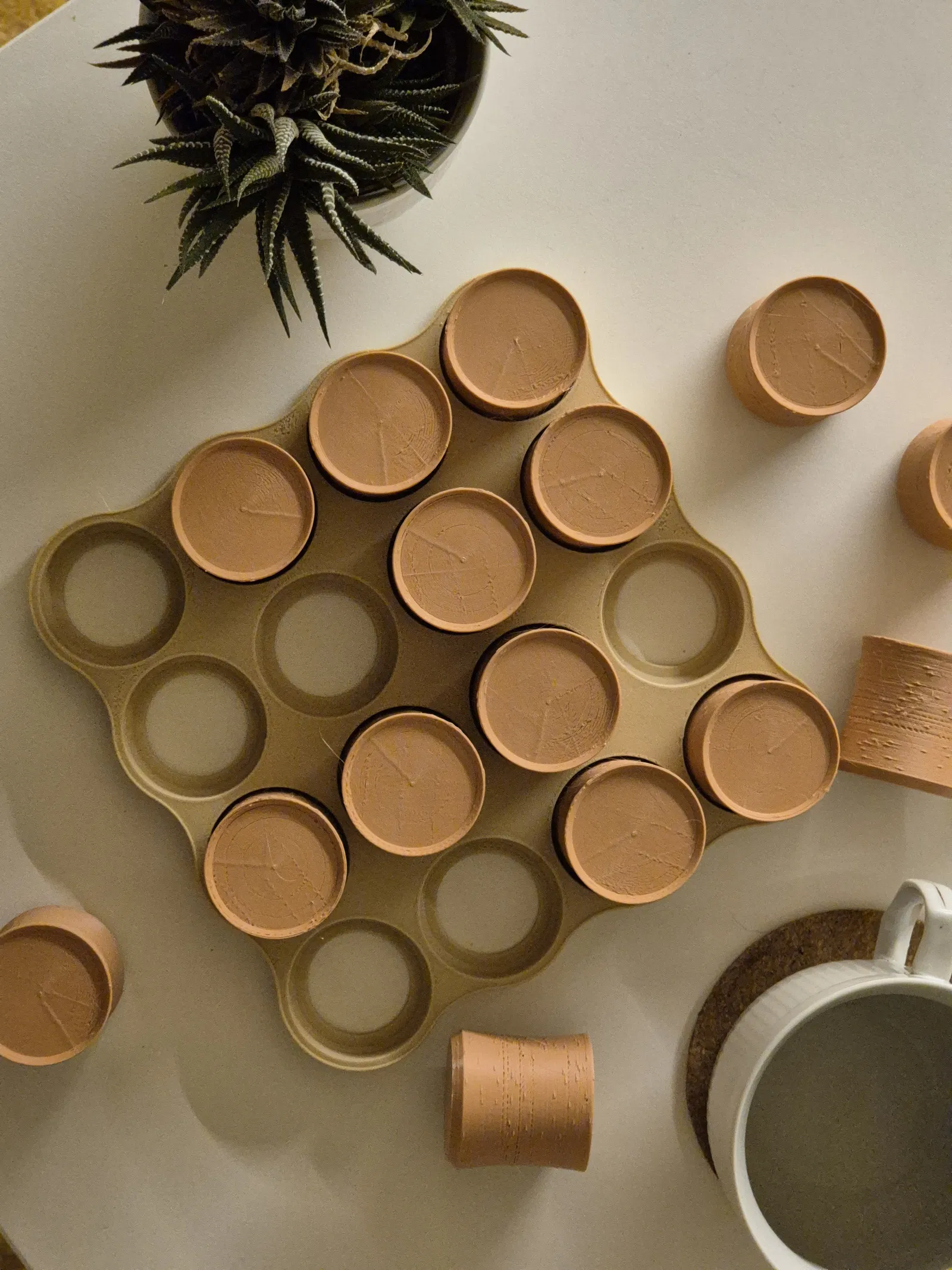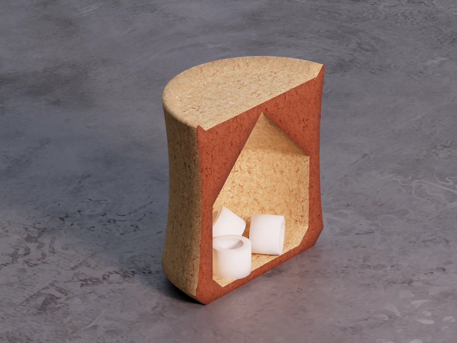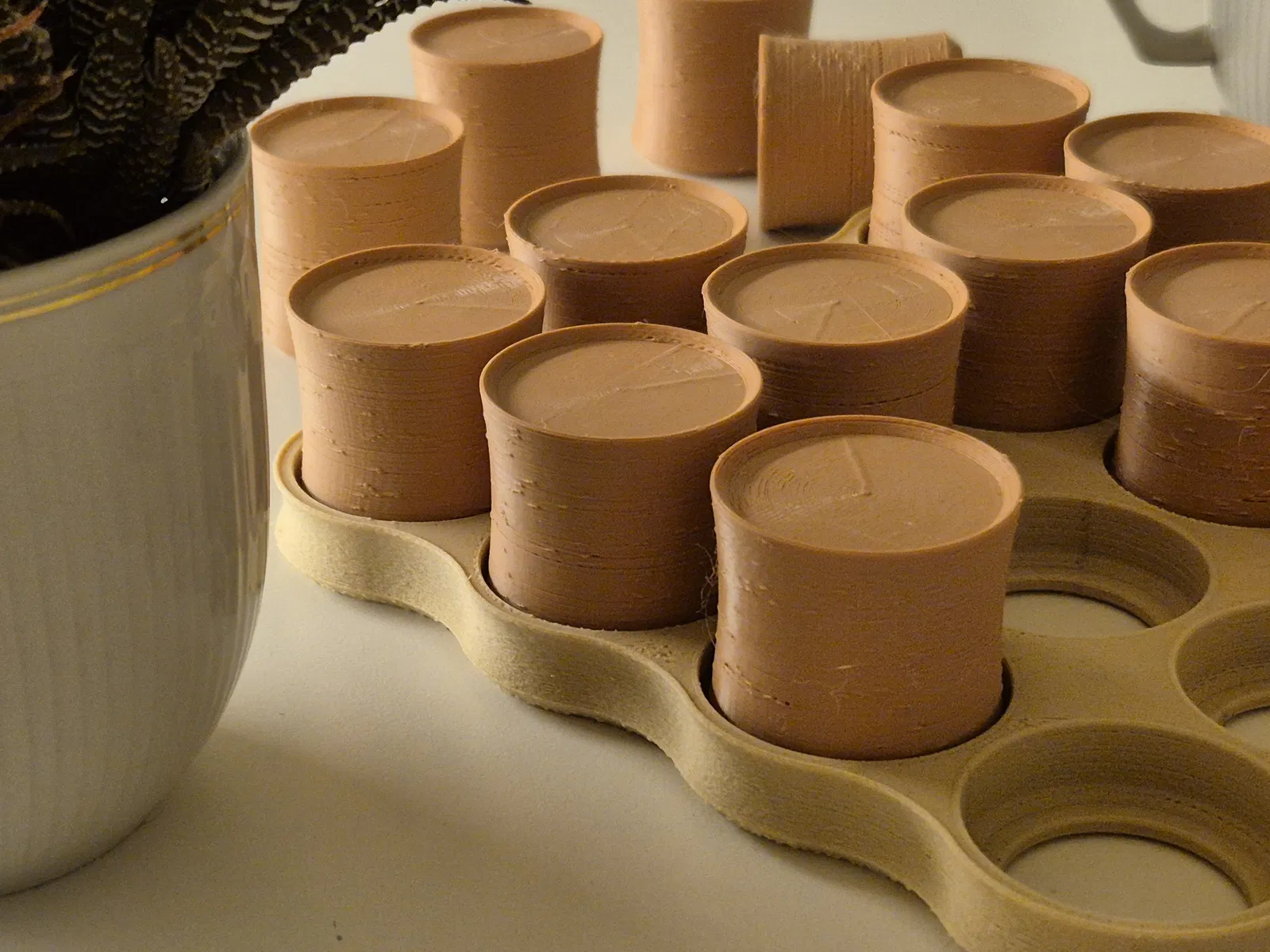 Mỗi chiếc hộp có khoang rỗng hình nón bên trong, được thiết kế để in dễ dàng mà không cần hỗ trợ (supports).