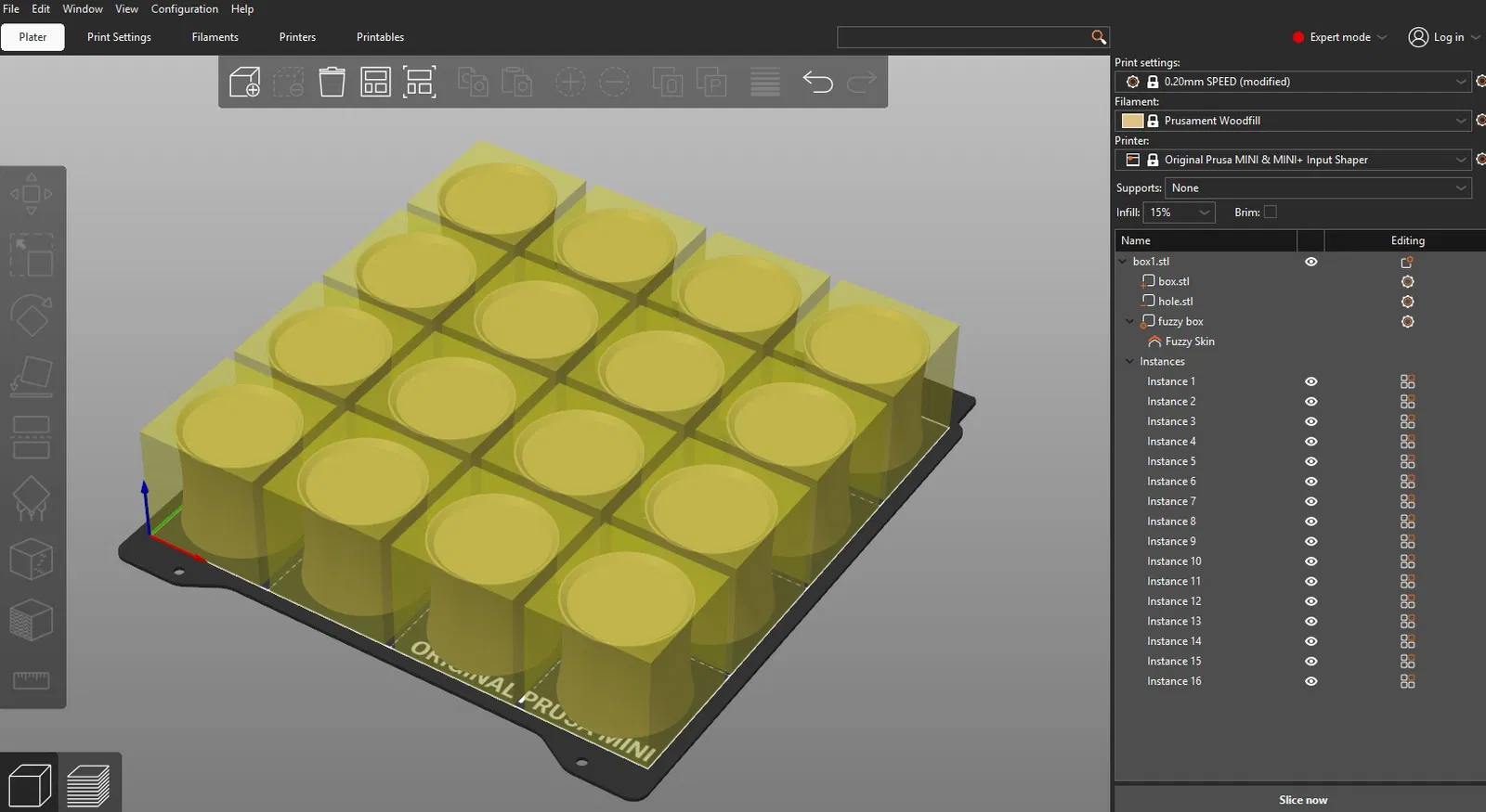 - vị trí đường nối (seam) ngẫu nhiên (để có hiệu ứng "fuzzy skin" tốt nhất mà không bị lộ đường nối)