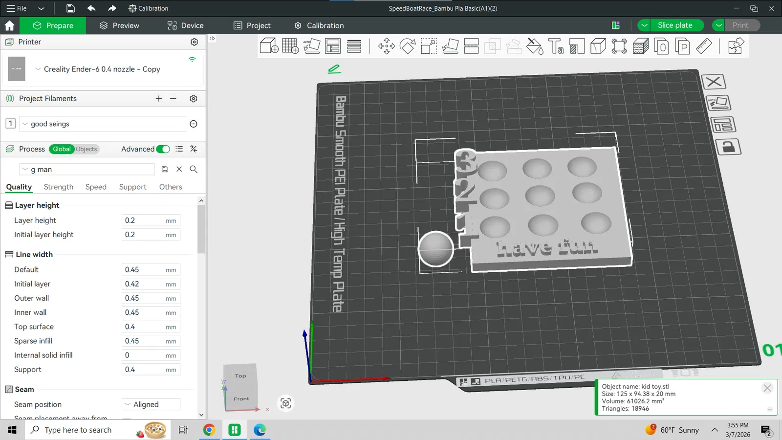 • Vật liệu khuyên dùng: Nên sử dụng nhựa PLA an toàn, không độc hại để in. Nếu muốn bền hơn, bạn có thể cân nhắc chọn các loại nhựa có màu sắc bắt mắt để thu hút sự chú ý của bé.