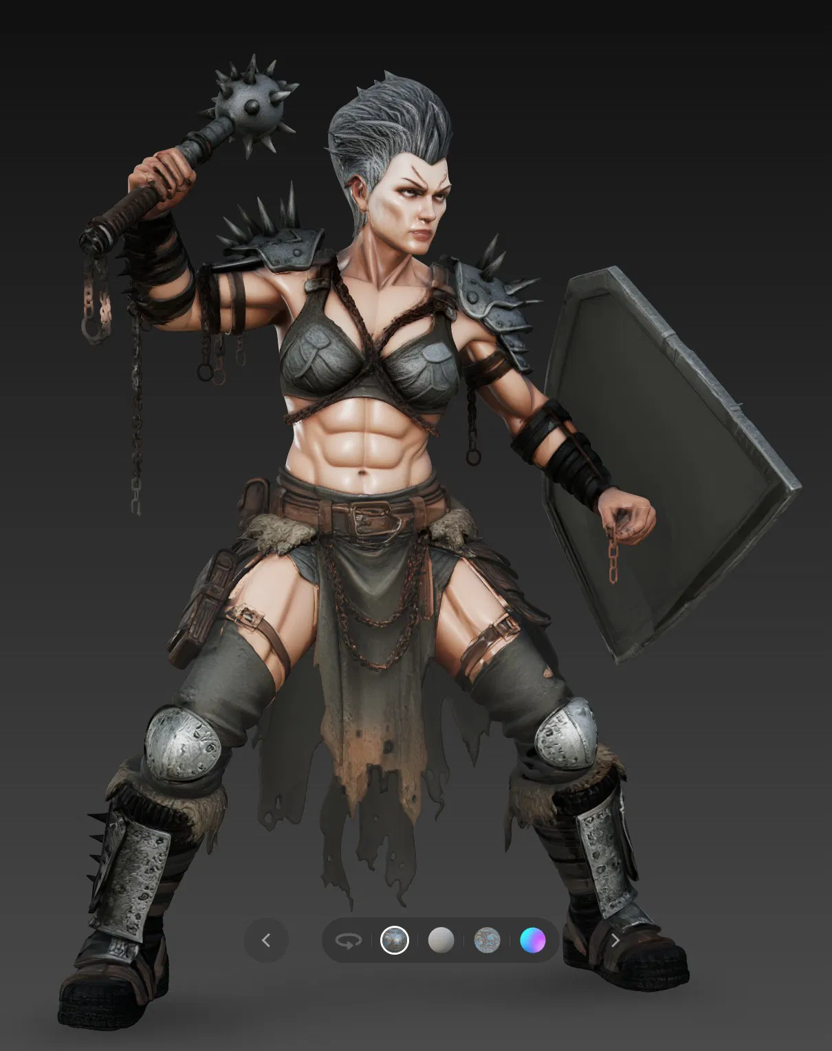 Nhân vật này được tạo hình trong tư thế chiến đấu đầy uy lực, tay cầm chùy gai và tay kia thủ một chiếc khiên chắn chắc chắn. Các chi tiết trên trang phục như vải rách, dây đai da và các tấm giáp kim loại đều được thể hiện rất sống động. Với chiều cao 72 mm, kích thước này cực kỳ lý tưởng để bạn có thể tập trung vào khâu sơn vẽ, làm nổi bật những nét biểu cảm cương nghị và cơ bắp mạnh mẽ của nữ chiến binh.