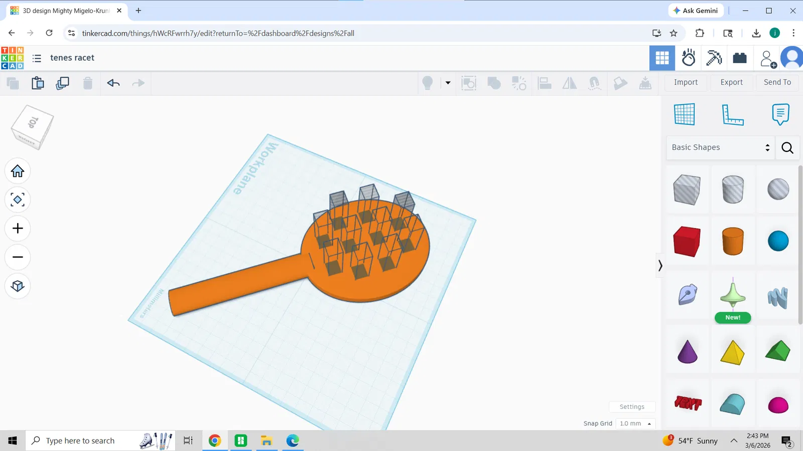 Đây là mô hình 3D được thiết kế mô phỏng hình dáng của một cây vợt tennis, với các chi tiết ô lưới được đục lỗ xuyên qua mặt vợt. Sản phẩm này có thiết kế khá đơn giản và tinh gọn, tập trung vào hình khối cơ bản của dụng cụ thể thao này. Nhờ cấu trúc này, bạn có thể dễ dàng in ấn mô hình mà không cần quá nhiều hỗ trợ phức tạp, phù hợp cho những ai đang tìm kiếm một vật phẩm trang trí nhỏ gọn hoặc đạo cụ hỗ trợ cho các dự án sáng tạo cá nhân.