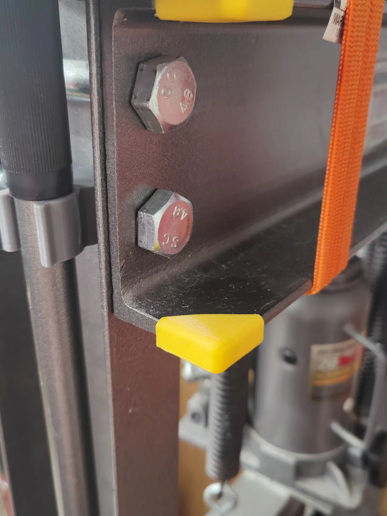 Mình thiết kế chi tiết này nhằm tránh các tai nạn va đập đầu không đáng có khi thao tác với máy ép 20-Ton của Harbor Freight. Sản phẩm này được in bằng nhựa TPU cho độ êm ái cao, giúp bảo vệ an toàn cho bạn trong quá trình làm việc tại xưởng.