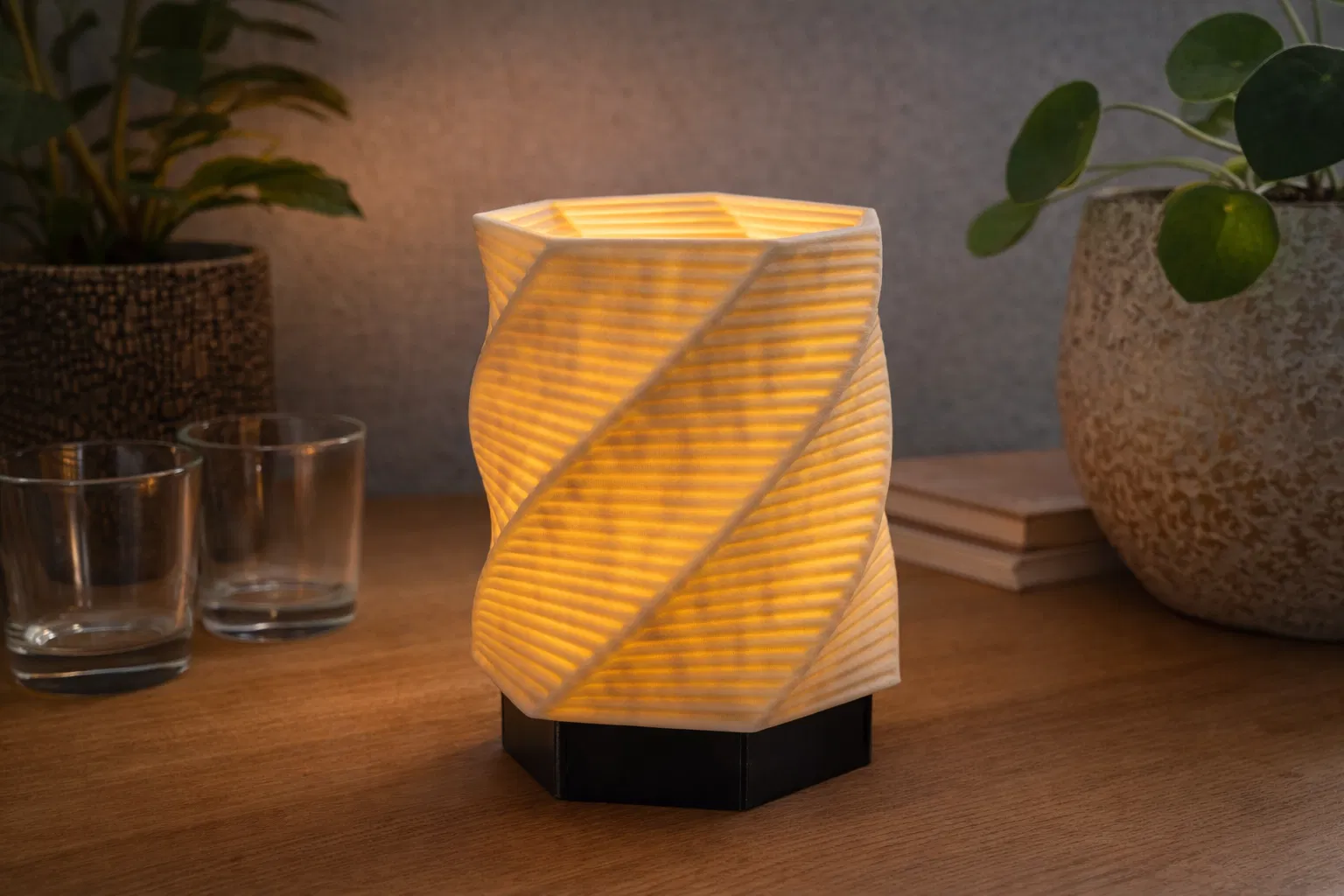Bộ chụp đèn hình lục giác kèm đế vô cùng đẹp mắt. Thiết kế được tối ưu hóa cho đèn LED Puck Light, dễ dàng tùy chỉnh kích thước để phù hợp với nhiều loại đèn khác nhau. Một món đồ trang trí 3D tinh tế cho không gian của bạn.