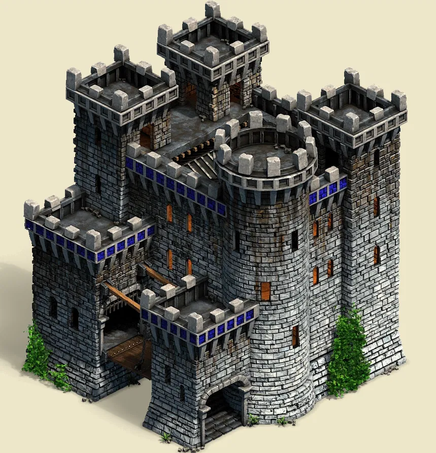 Mô hình 3D Lâu đài Teuton từ tựa game Age of Empires II Definitive Edition. Trong game, đây là công trình lâu đài có tầm bắn xa nhất, cực kỳ lợi hại trong việc phòng thủ và khắc chế các loại pháo lớn của đối phương.