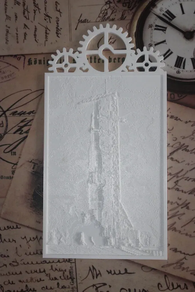 Mô hình lithophanie tên lửa Saturn V với đế hút chân không