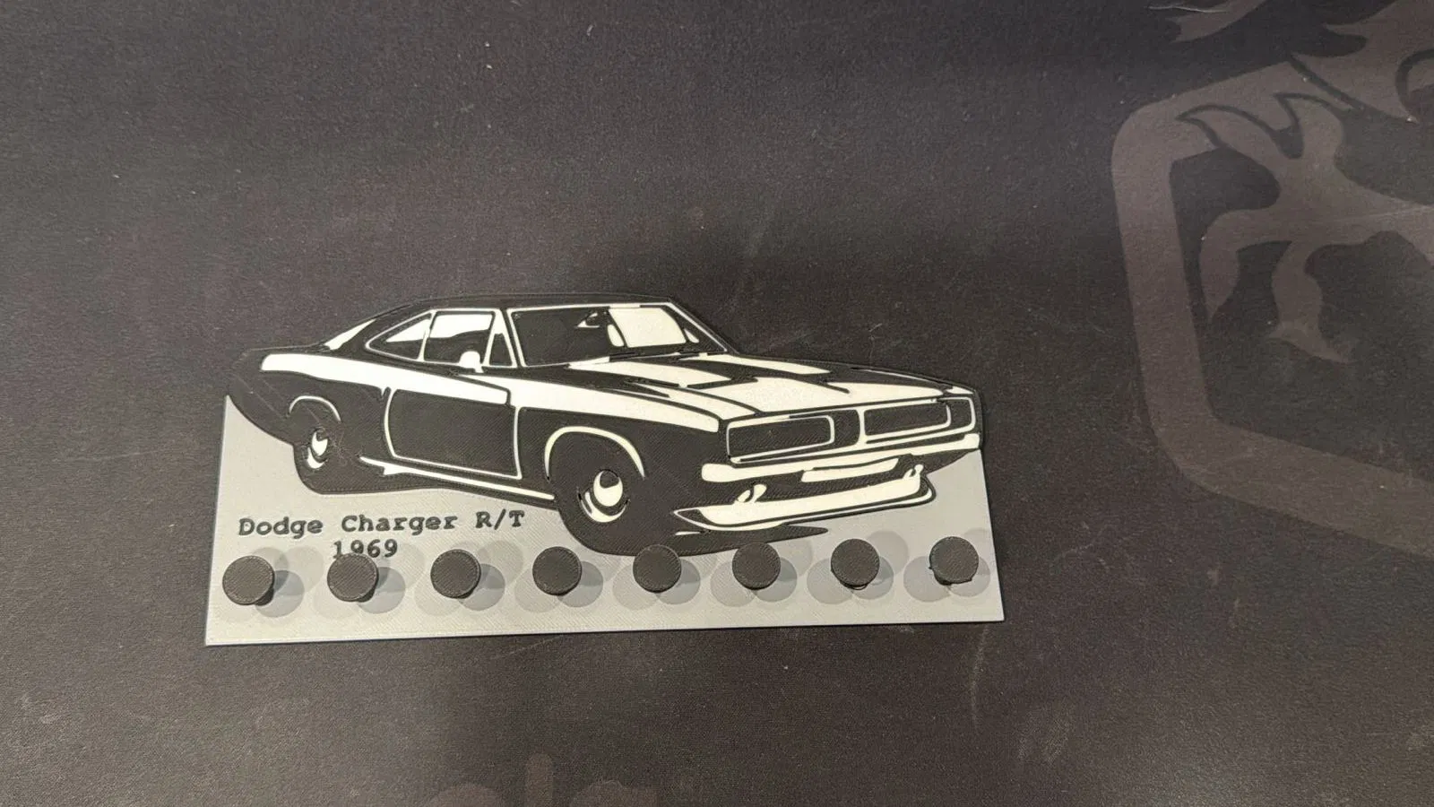 Móc treo chìa khóa thiết kế lấy cảm hứng từ dòng xe cổ điển Dodge Charger RT 69. Sản phẩm in nhanh, không cần support, cực kỳ tiện lợi để trang trí và sắp xếp chìa khóa cho gara hoặc không gian sống của bạn.