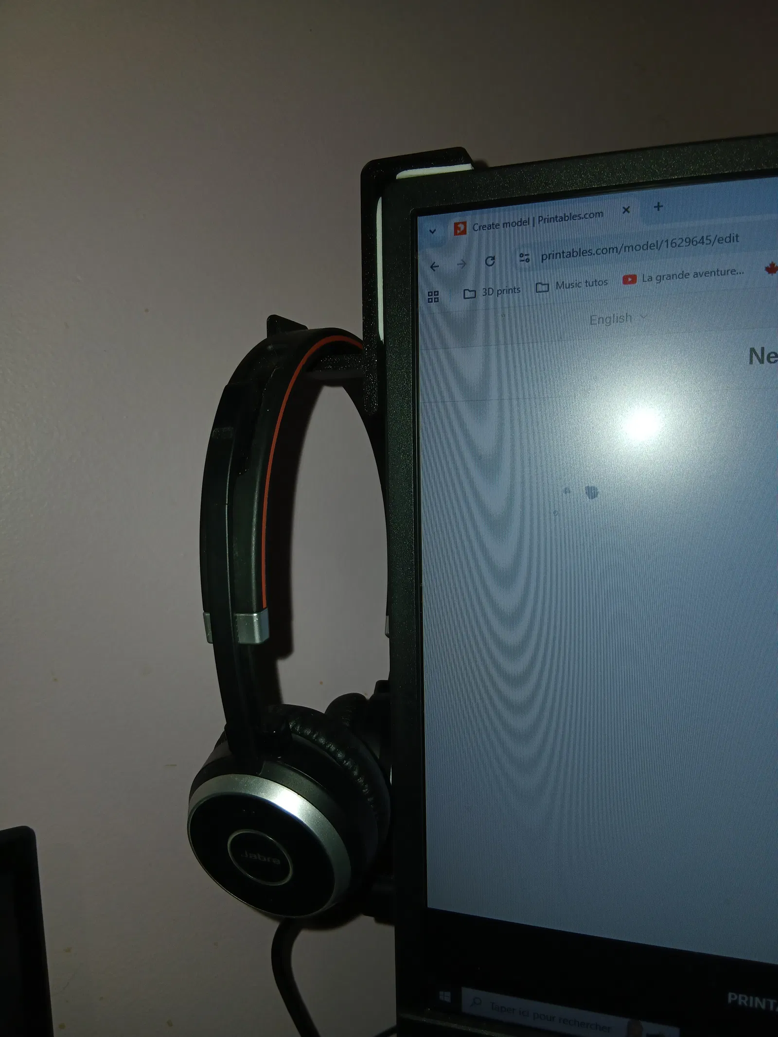 Mẫu giá treo tai nghe gọn gàng, thiết kế gắn trực tiếp vào màn hình máy tính. Sản phẩm cực kỳ dễ in, chỉ mất khoảng 35 phút và bám dính chắc chắn khi kết hợp với băng dính hai mặt. Tối ưu cho nhựa PLA với thiết lập in đơn giản.
