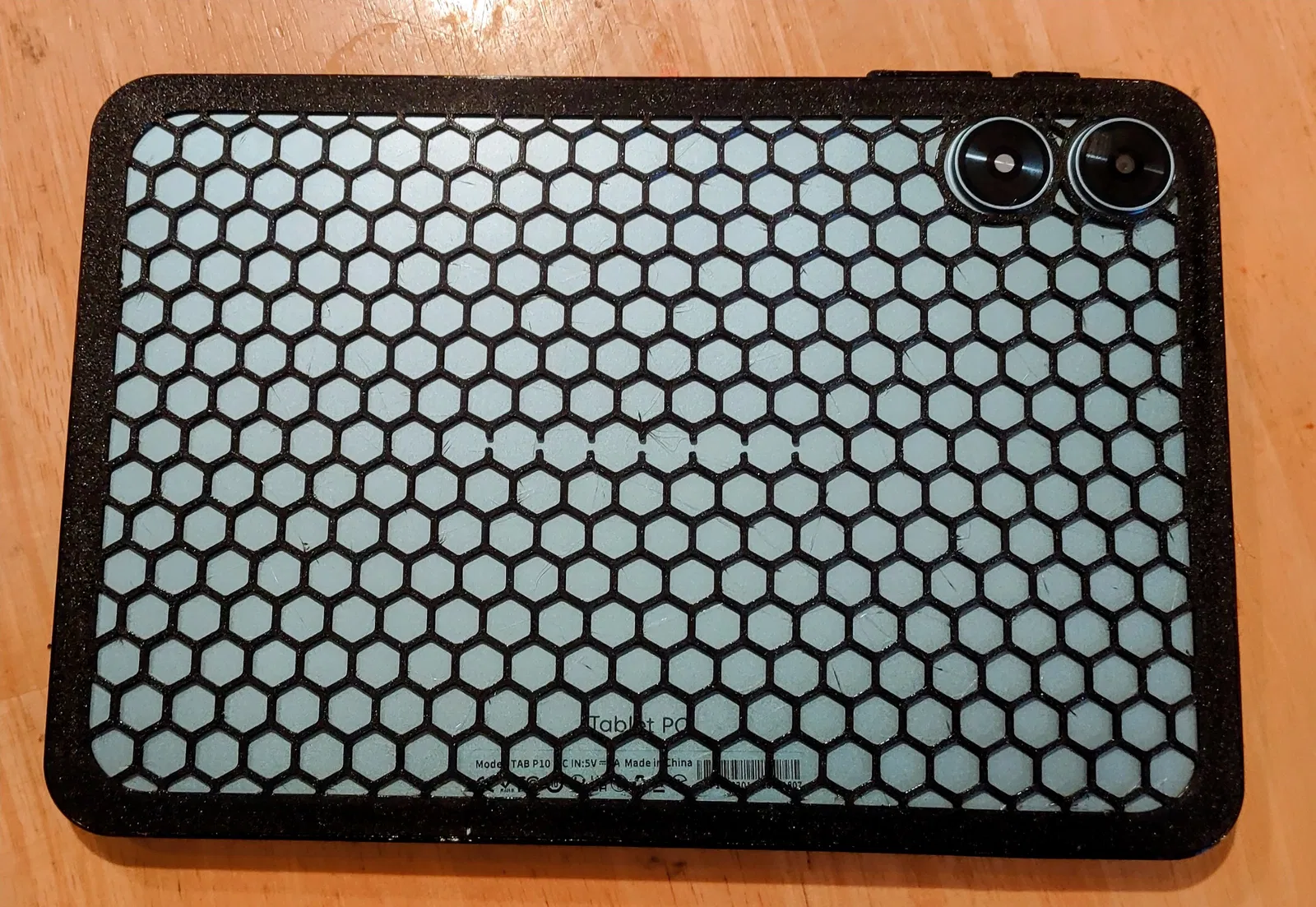 Đây là một mô hình OpenSCAD tham số dùng để tạo ốp lưng cho máy tính bảng (hoặc các thiết bị khác) của riêng bạn. Mình mua một chiếc máy tính bảng Android giá rẻ trên sàn thương mại điện tử nhưng lại không tìm được ốp lưng phù hợp, nên máy in 3D lại một lần nữa giúp mình giải quyết vấn đề. Thay vì chỉ thiết kế cho riêng chiếc máy tính bảng này (vốn sẽ lỗi thời chỉ sau 3 tháng), mình quyết định làm một thiết kế linh hoạt để có thể tùy chỉnh cho bất kỳ thiết bị nào mình mua sau này. Khi mở file OpenSCAD, bạn sẽ thấy tất cả các thông số của thiết bị có thể được tùy chỉnh. Hãy dùng thước đo có độ chính xác cao (đặc biệt là thước kẹp vernier) để đo kích thước thiết bị của bạn rồi nhập vào. Các thông số cần thiết đã được chú thích rất kỹ ở phần đầu file. Mô hình có tùy chọn tạo mặt lưng dạng tổ ong nếu bạn muốn tiết kiệm vật liệu hoặc đơn giản là thích vẻ ngoài đó. Mô hình trong ảnh và file nguồn SCAD là dành cho thiết bị "TAB P10". Mình đã in ốp bằng nhựa TPU màu đen độ cứng Shore 95A với độ dày lớp in 0.2 mm, mật độ in (infill) 15% (để tạo độ đàn hồi ở các cạnh) và có dùng hỗ trợ (supports). Việc này mất khoảng 5 tiếng trên máy Bambu P1S của mình. Nếu có sẵn vật liệu, mình nghĩ chọn độ cứng Shore 80A-90A sẽ giúp ốp lưng mềm dẻo hơn.