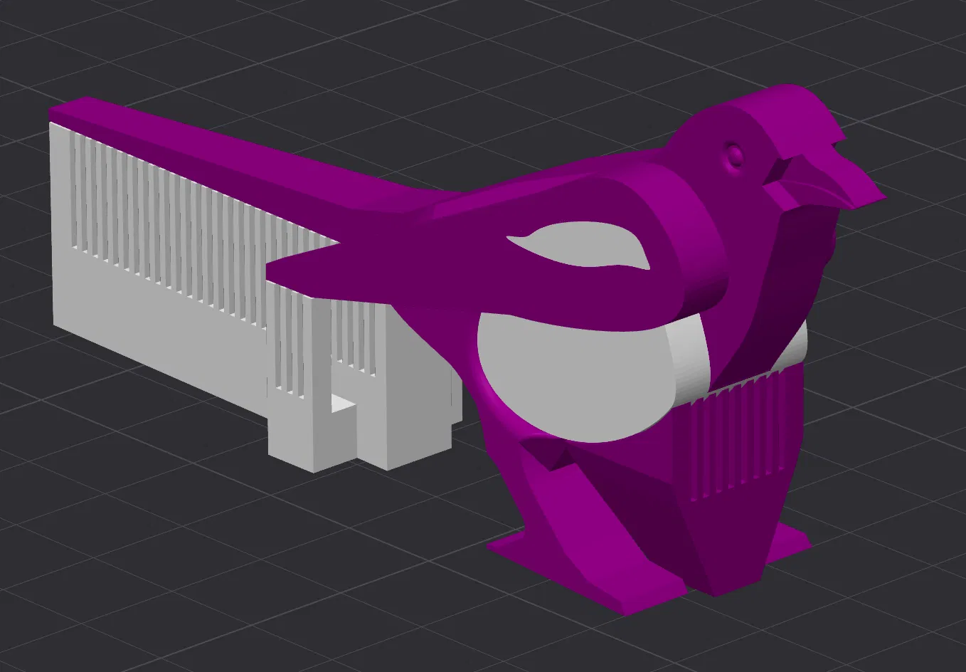 Chú chim ác là (magpie) này được thiết kế để in bằng vật liệu thông thường như PLA kết hợp cùng một vật liệu tương phản không dính với nó, ví dụ như PETG.