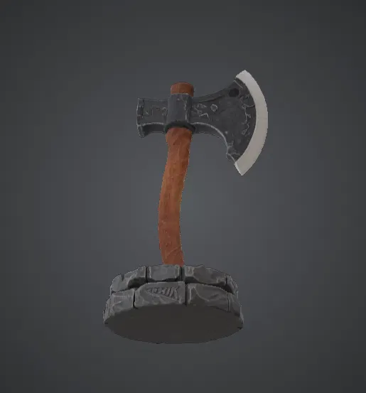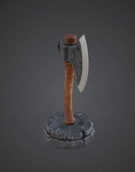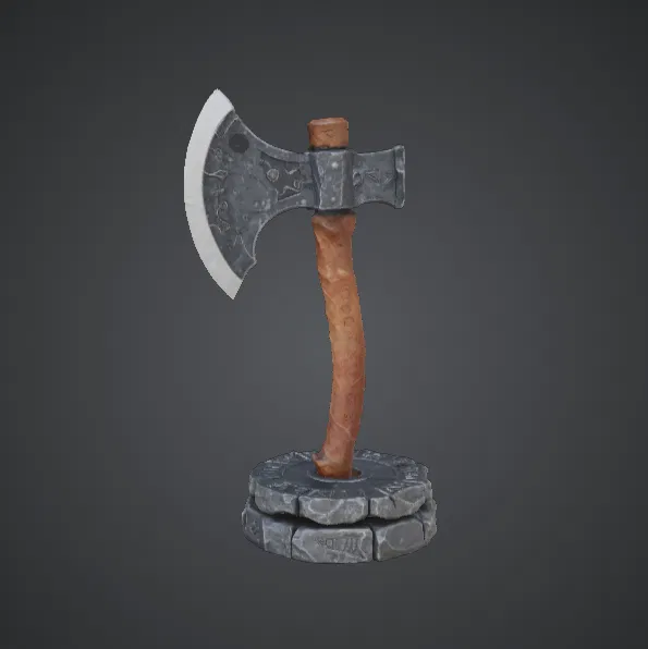 Phần bệ đá hình tròn không chỉ giúp mô hình đứng vững mà còn làm tăng thêm cảm giác như một món vũ khí đang được trưng bày trong kho vũ khí hoặc sảnh đường của các chiến binh thời xưa. Thiết kế sắc nét cùng hình dáng mạnh mẽ giúp mô hình này cực kỳ lý tưởng để trưng bày hoặc tô vẽ, với các chi tiết bề mặt sống động trên lưỡi rìu, tay cầm và cả phần bệ đá.